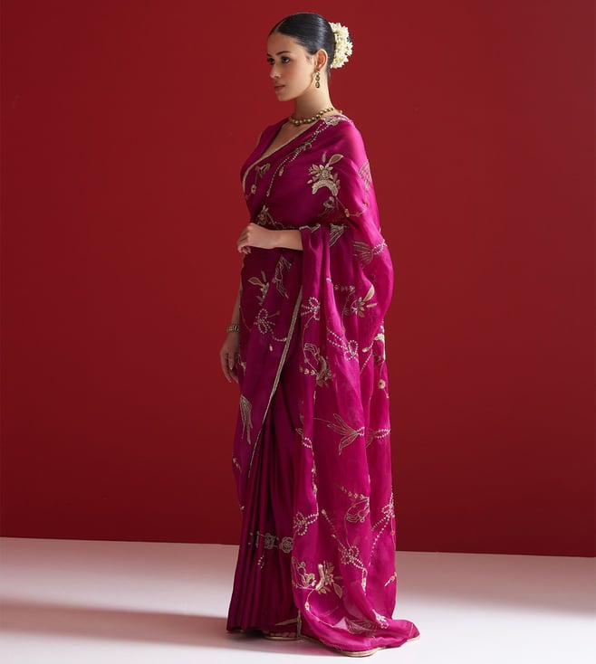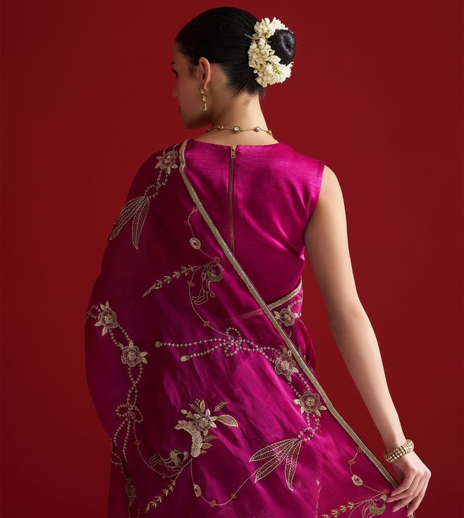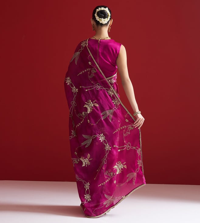 Sitaraa Mulberry Wood Purple Gajji Silk Organza Regular Fit Saree With Blouse
