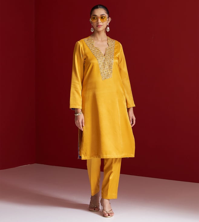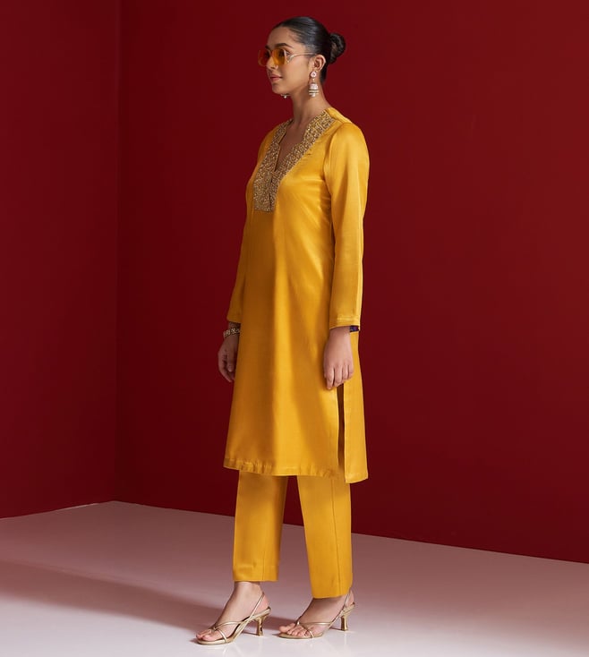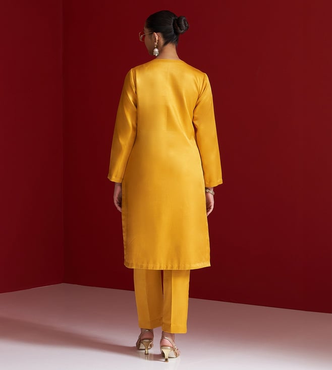 Mustard Gajji Silk Regular Fit Kurta With Pants