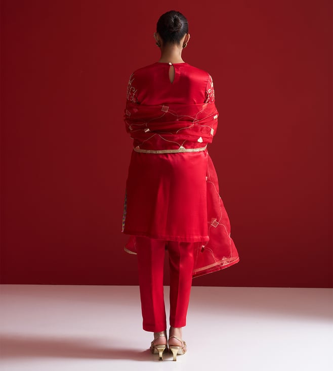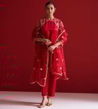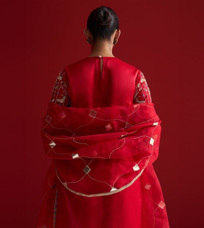 A sheer silk organza dupatta with a hand embridered jaal in abla work.