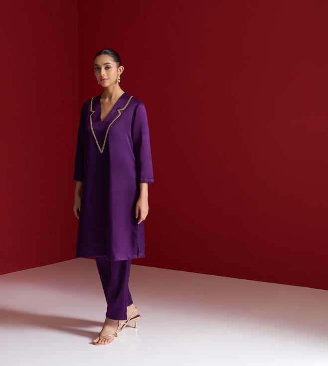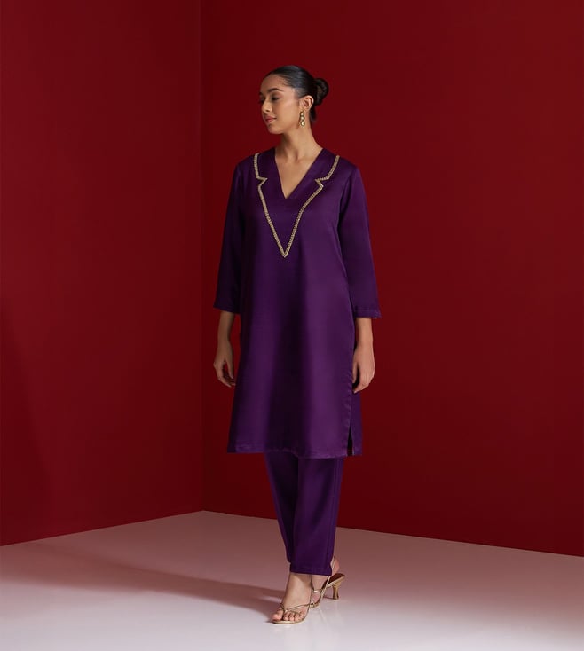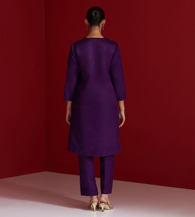 Royal Purple Gajji Silk Regular Fit Kurta With Pants