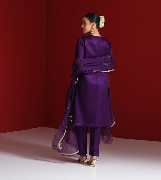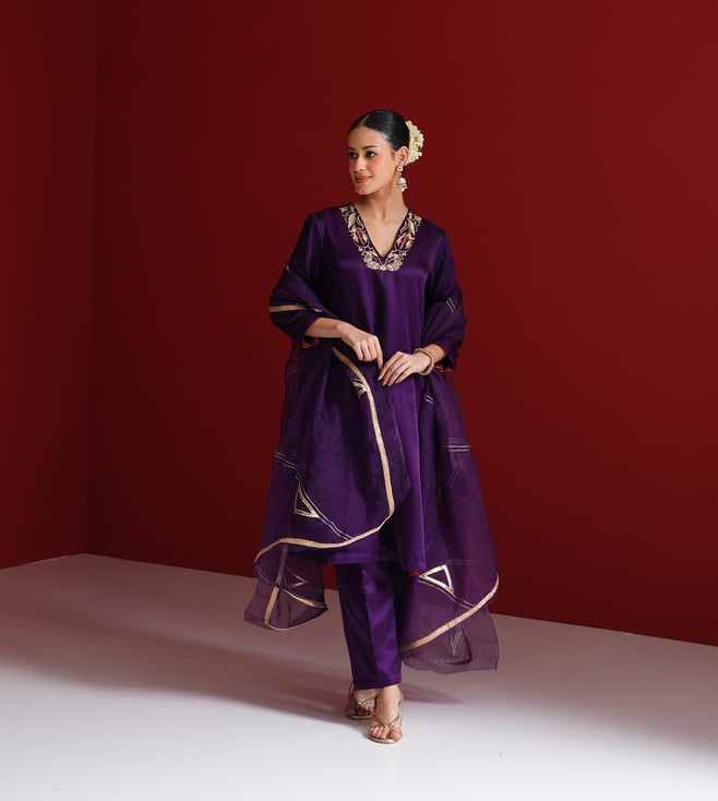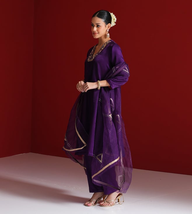 Sitaraa Royal Purple Organza Regular Fit Dupatta