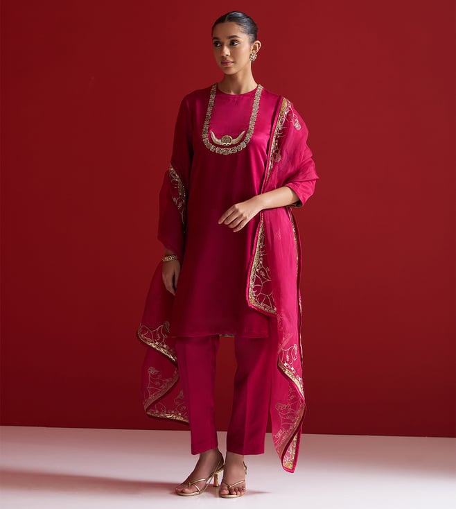 Sitaraa Rubine Red Organza Regular Fit Dupatta