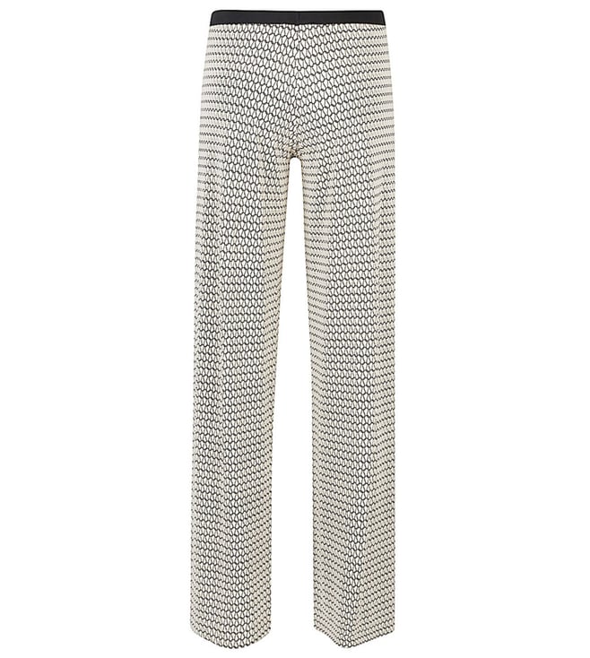 Introducing the Palazzo trousers with all-over multicolor print, elastic waist, no pockets, straight hem. Viscose 95% elastane 5%. this piece fits true to size. We recommend you get your regular size. model is 1, 75m / 5ft 8in wearing size 36 (es), a stylish and versatile piece that features Siyu Black & White Printed trousers. Perfect for adding a touch of elegance to your wardrobe, this piece offers comfort and flair. Ideal for various occasions, it's designed to enhance your unique style with its detailed craftsmanship and modern appeal.