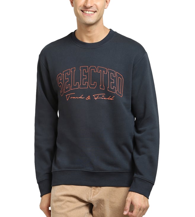 Navy Blue Cotton Solid Men Regular Fit Sweatshirt