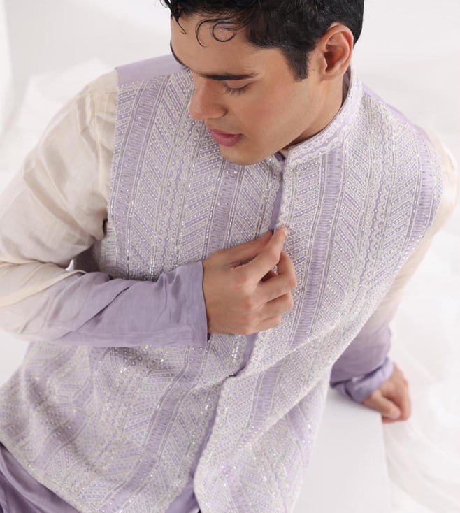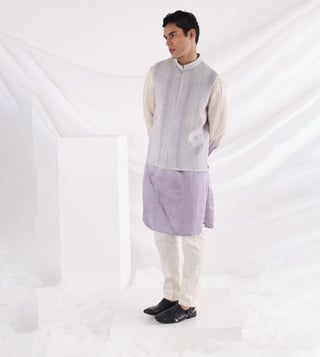 Smriti Lavender Elysian Dream Nehru Jacket and Amethyst Pleated Kurta and Pant
