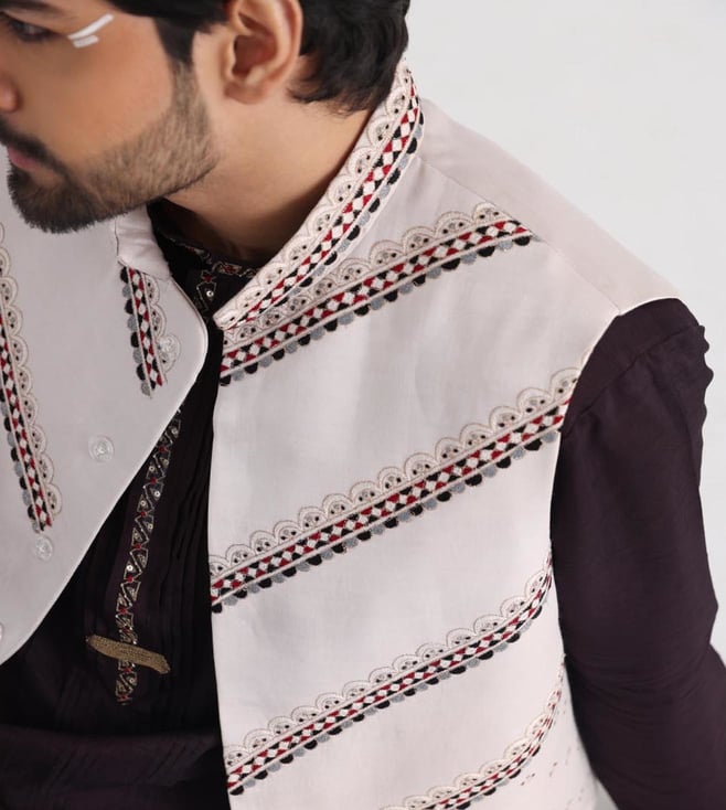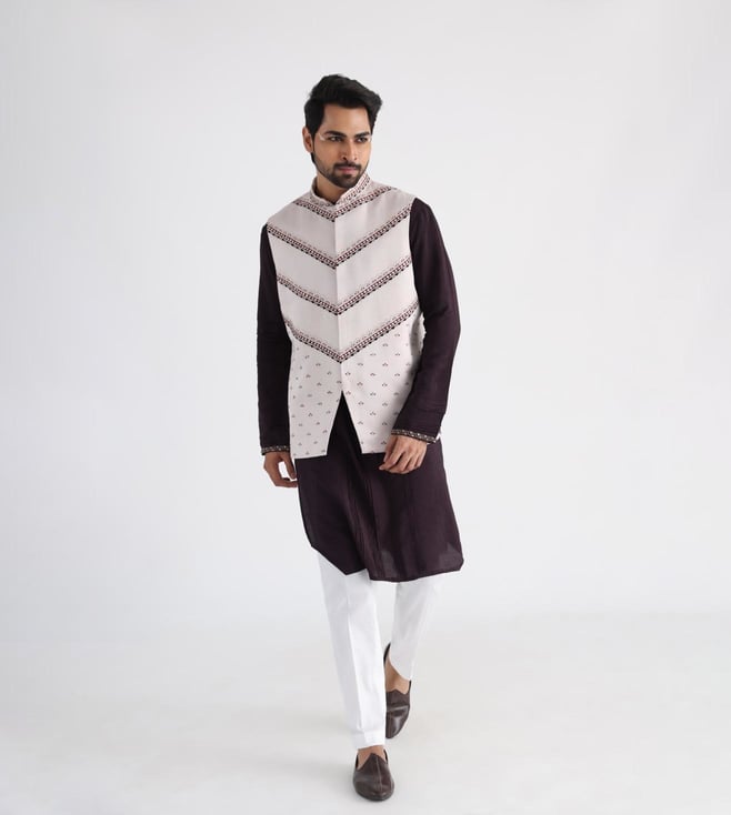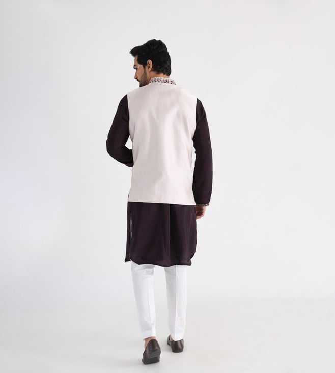 Smriti Off White, Brown Guldozi Kurta with Bottom and Nehru Jacket