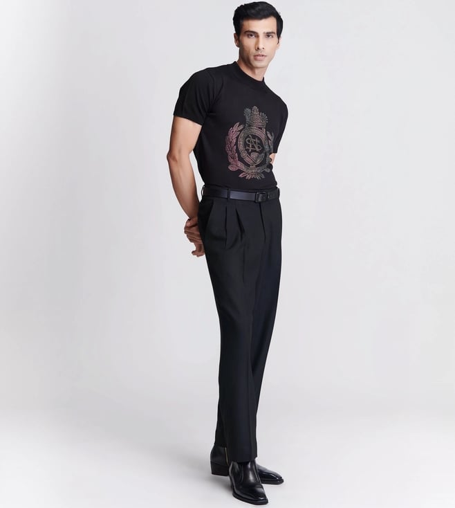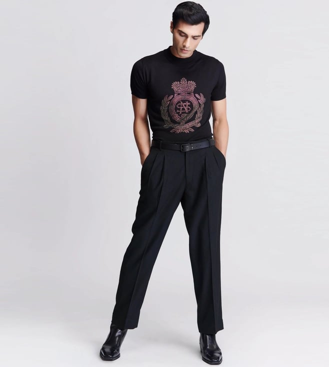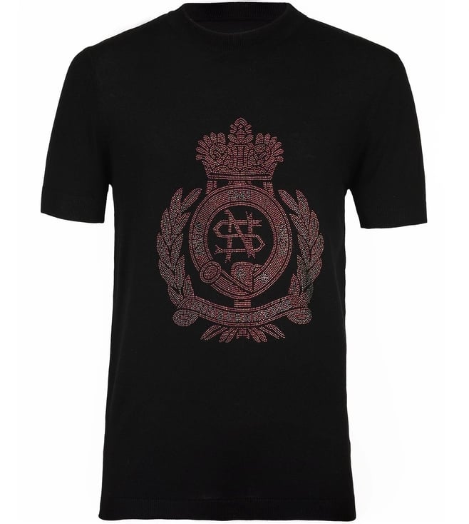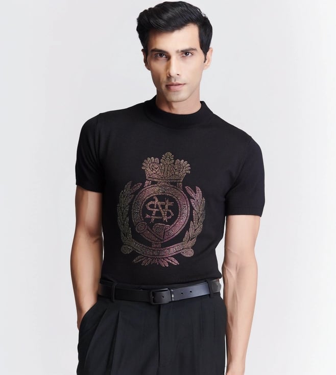 S&N Shantnu Nikhil Black Dazzle Knit Studded T-Shirt