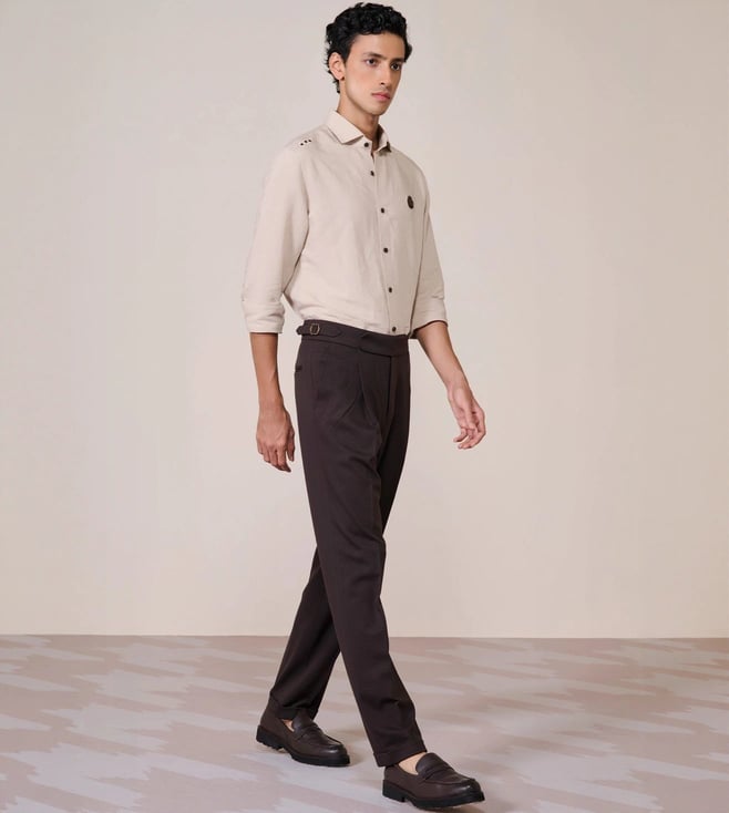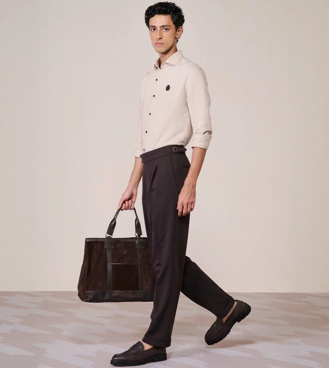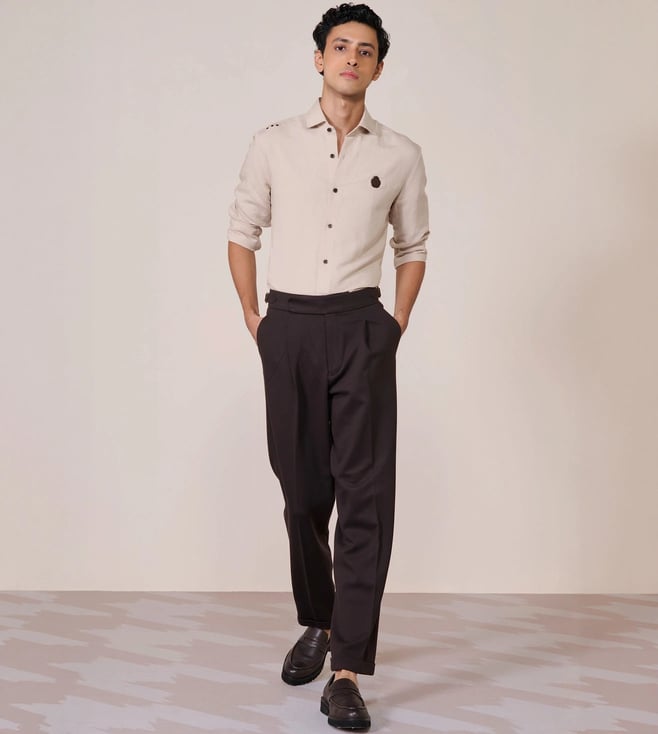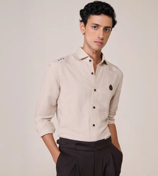Upgrade your everyday style with the S&N Shantnu Nikhil Ecru Piazza Nova Linen Crested Shirt. This classic linen shirt features a faux leather crest, blending comfort and sophistication. Perfect for round-the-clock wear, it¿s a must-have for a versatile, stylish wardrobe that exudes timeless elegance.
