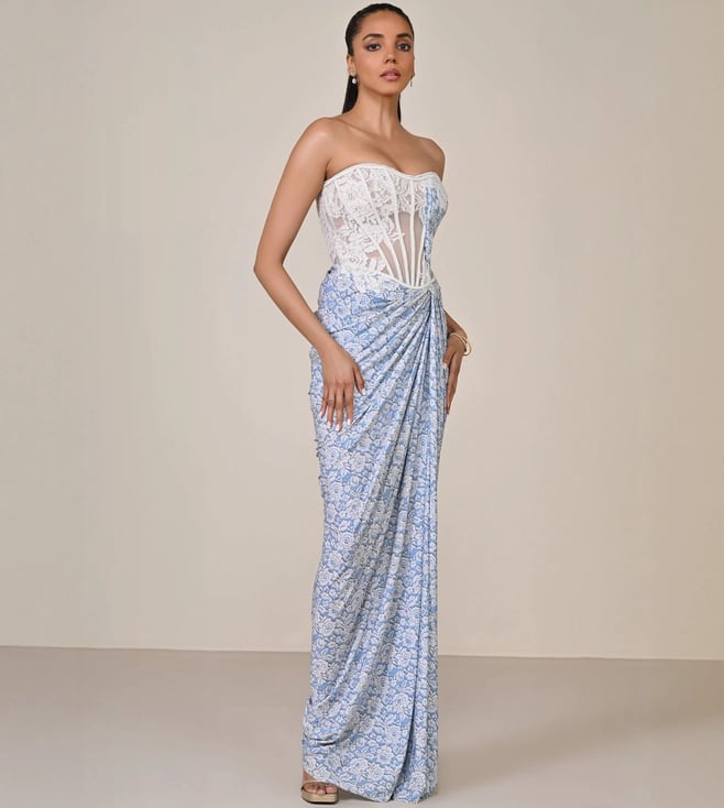 S&N Shantnu Nikhil Light Blue Applique Corset Saree Gown