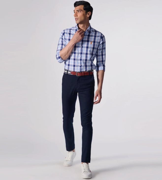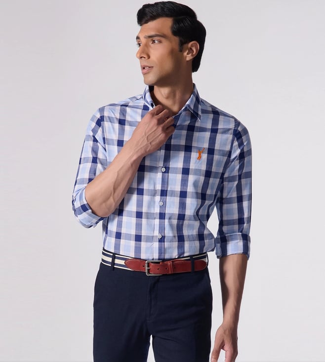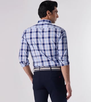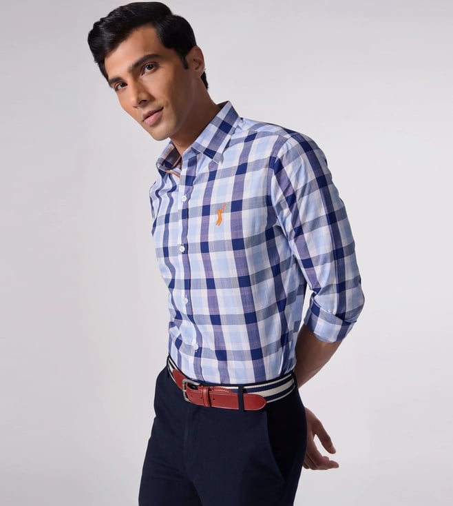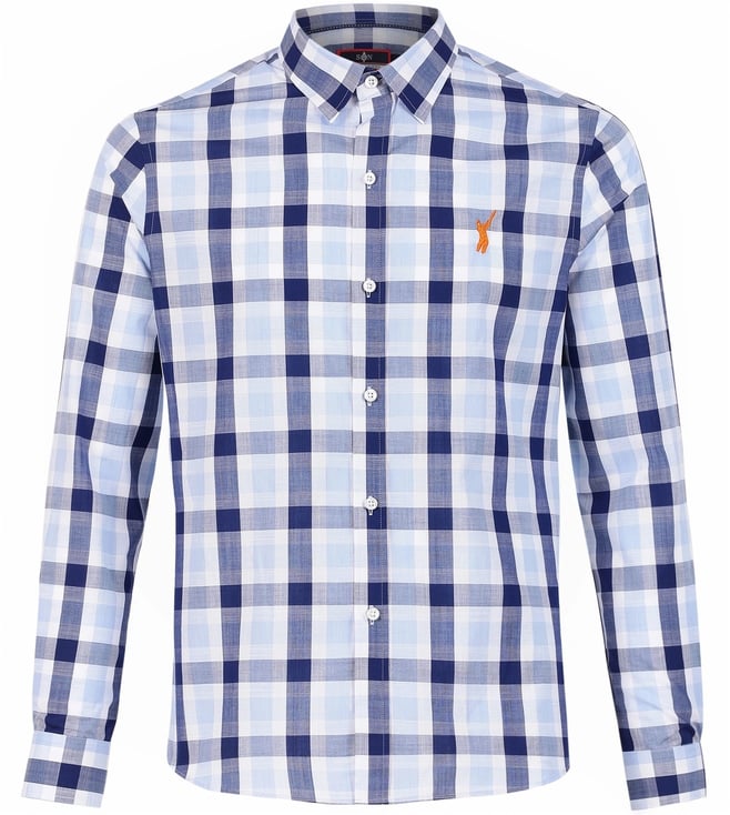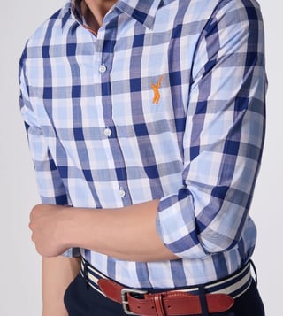 S&N Shantnu Nikhil Navy Beyond The Crease Plaid Shirt With Batsman Logo