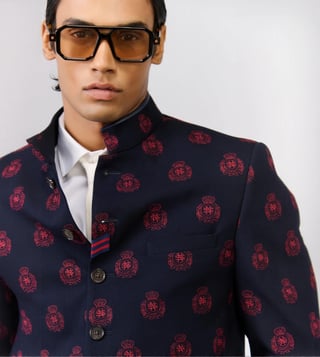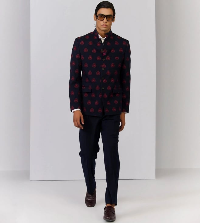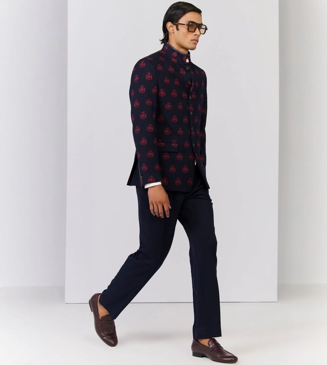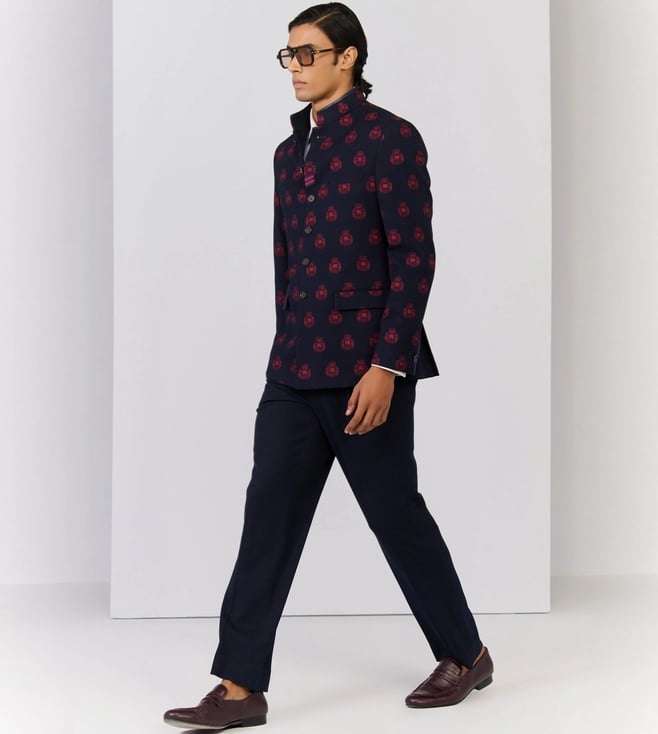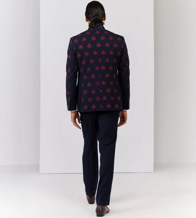 S&N Shantnu Nikhil Navy Slim Fit Printed Jacket