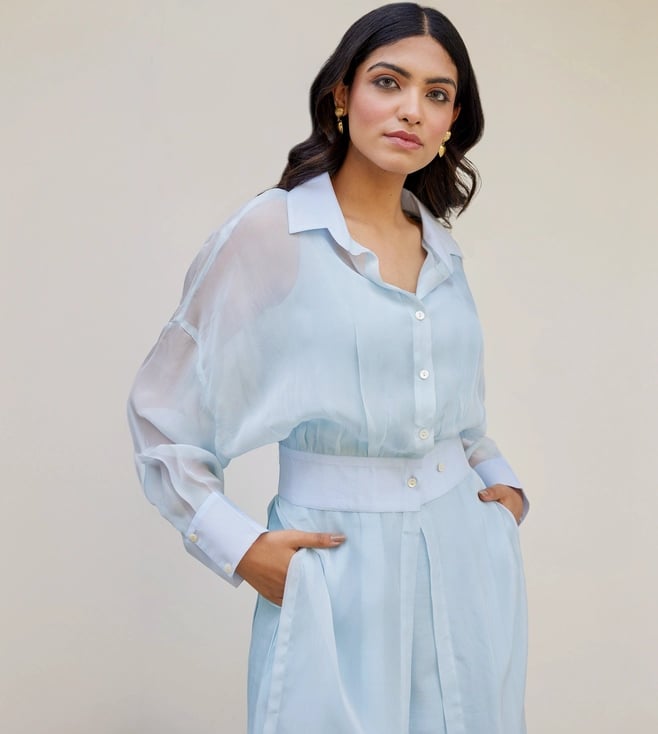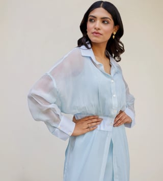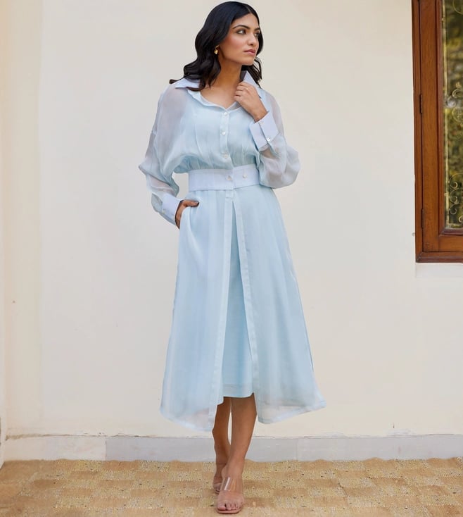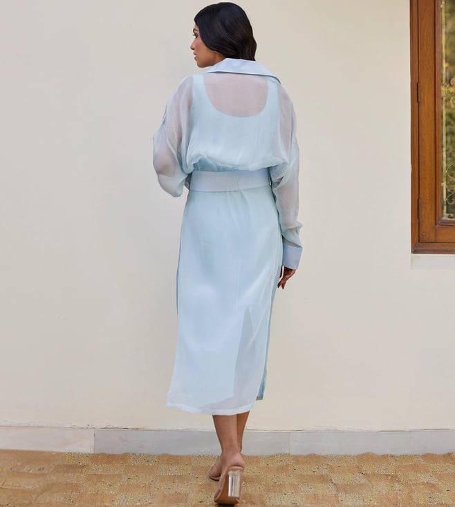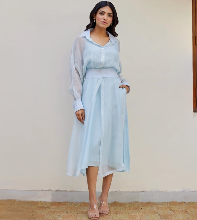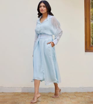 KapraahaSoft Blue Solid Organza Jacket With Dress