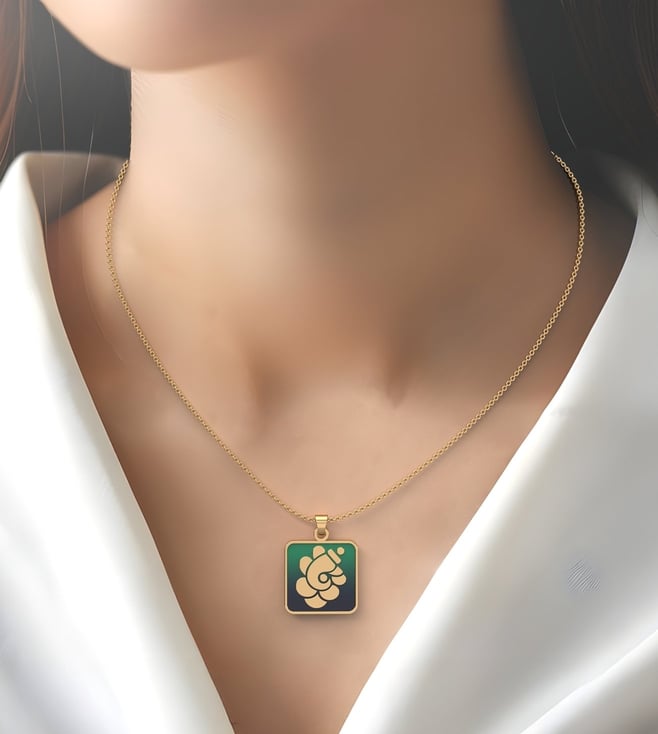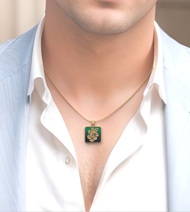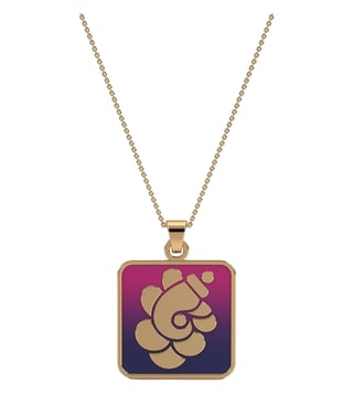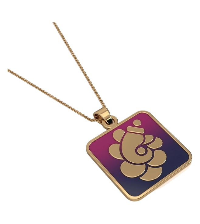 Padma ganesha square gold spiritual keepsake pendant, crafted in 18kt gold, this exquisite pendant features a divine silhouette of lord ganesha, adorned with berry red blue ombre enamelling. A symbol of wisdom and new beginnings, this one of a kind keepsake blends spiritual grace with timeless luxury a cherished talisman to elevate your everyday elegance.