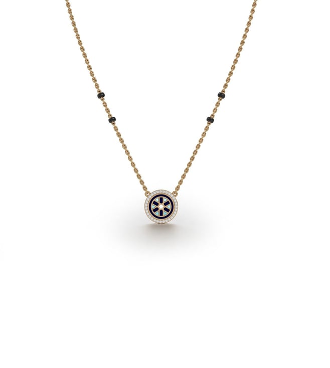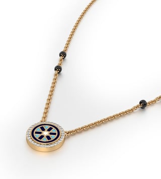 OMAIRA Divinity Mangalsutra Medium, from our award winning Miraas collection meticulously crafted in 18kt gold, with finely assorted diamonds, and set with 6 point star Persion girih pattern in specially formulated Prussian Blue, Sky Blue and Ivory White enamel detailing.