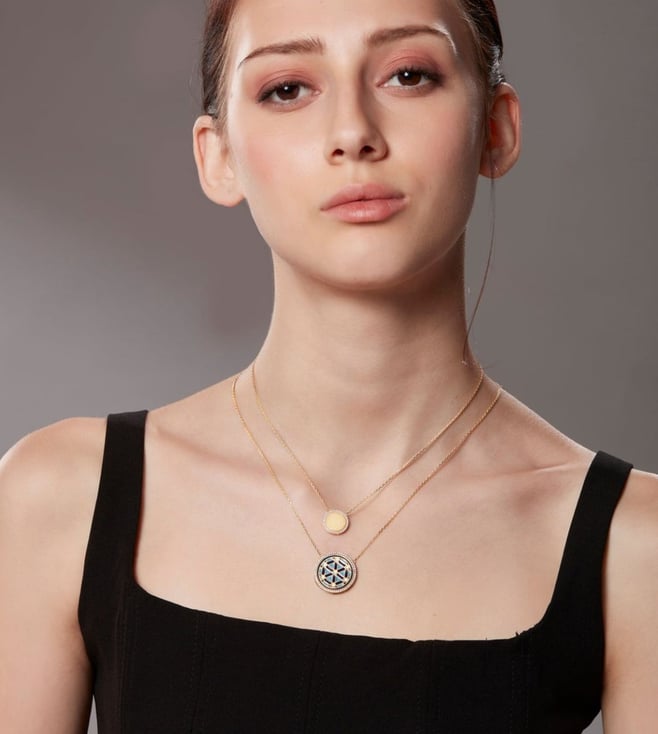 SOHNAA Yellow Gold Miraas Omaira Double Chain Round Pendant - Medium