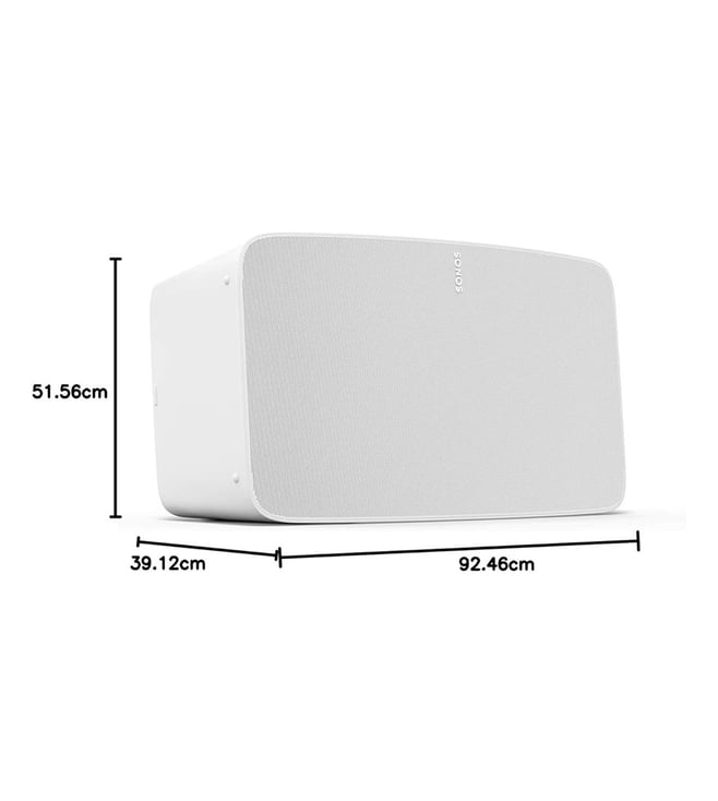 All-new Sonos Five - Experience vividly clear, room-filling sound for music and more with Five, tuned by renowned producer Giles Martin. Enjoy control with the Sonos app, Apple AirPlay 2, and more. Deep bass - Five's unrivalled acoustic design features 3 high-excursion woofers within a sealed architecture that eliminates reverb and echo. Ultra-wide soundstage - 2 precisely-angled side tweeters create spatial extension and rich stereo sound, while a center tweeter optimizes vocal playback.