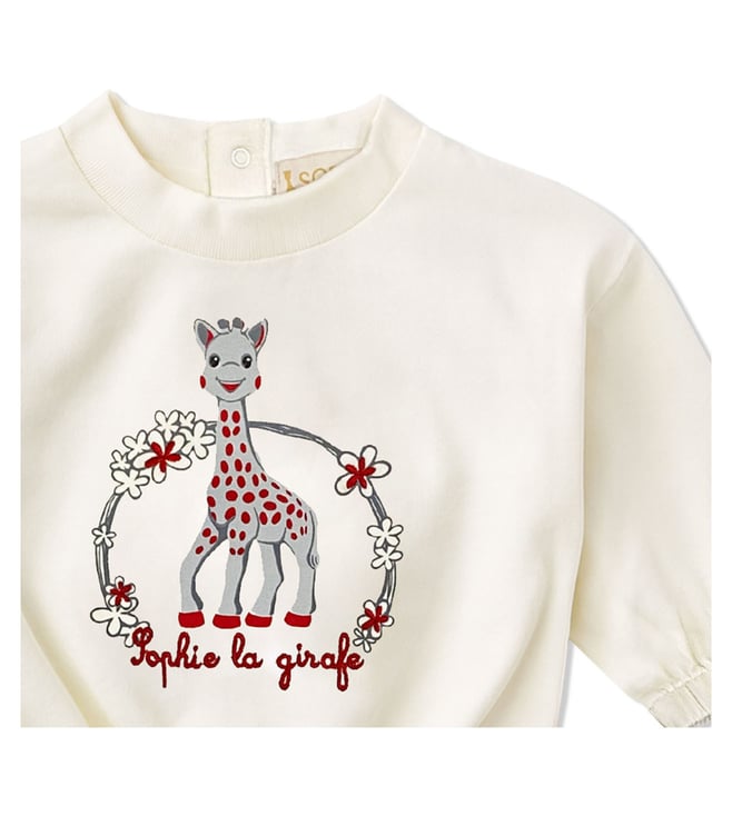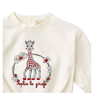 Elevate your little ones wardrobe with our Sophie La Girafe Cream Logo Printed Regular Fit Dress. This stylish sweatshirt features the iconic logo print, made from soft fabric for a cozy everyday look. Perfect for any occasion, this dress effortlessly combines fashion and comfort, making it a must-have for your childs wardrobe. Keep your little one looking adorable and feeling great with this versatile and trendy piece.