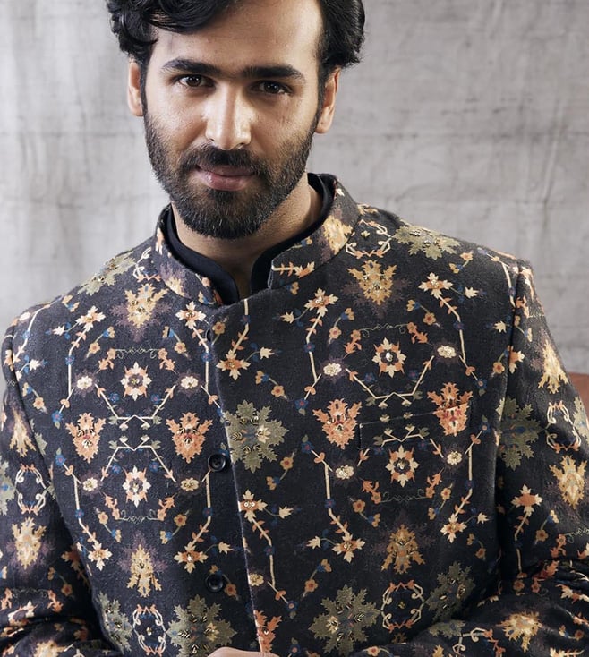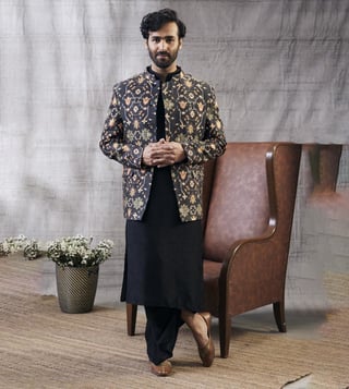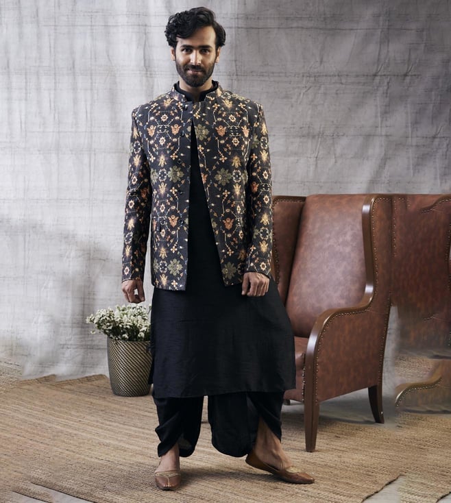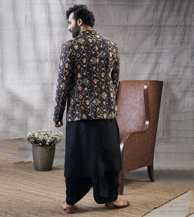 Soup By Sougat Paul Black Zahra Printed Kurta with Jacket and Dhoti