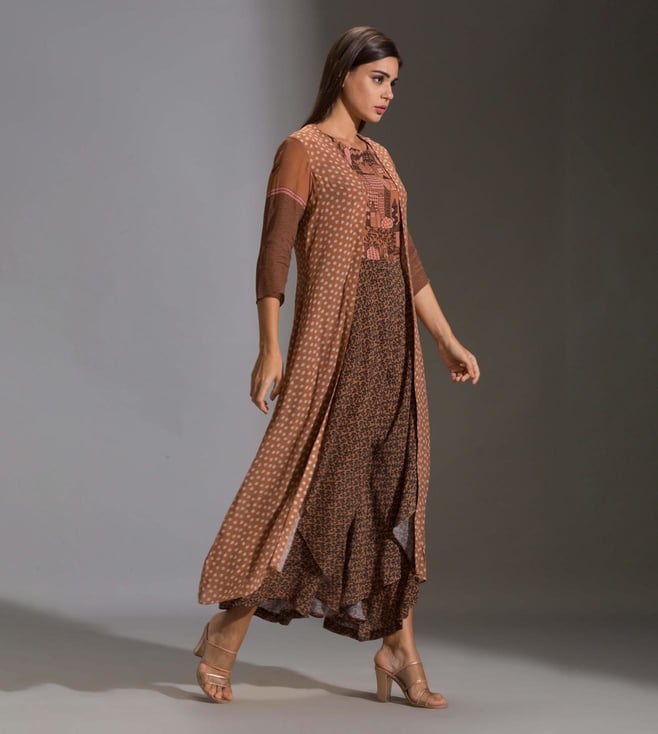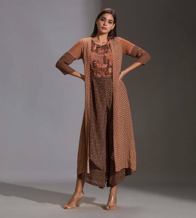 If simplicity is your cup of tea, this jumpsuit with jacket from Soup By Sougat Paul is a must-have. Tailored to sartorial perfection from crepe fabric, it assures a soft and soothing touch against the skin. The round neck adds to its appeal. Featuring three-fourth sleeves, it will surely impress your peers. Country of Origin - India. Disclaimer: Product colour may slightly vary due to photographic lighting sources.