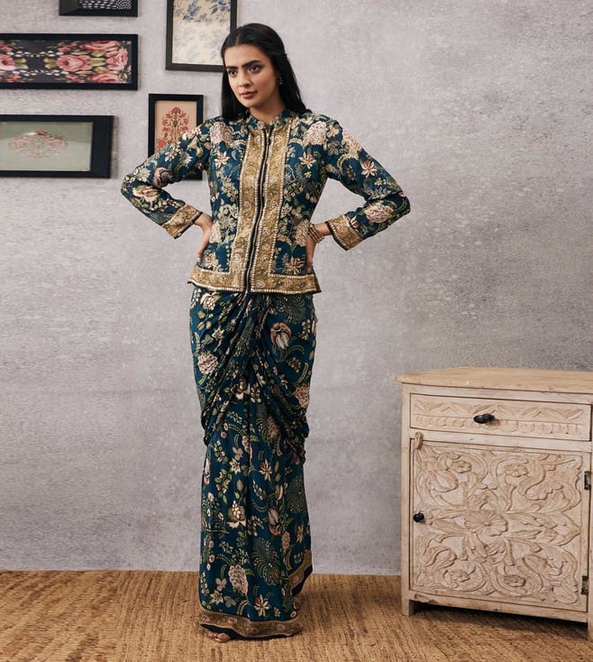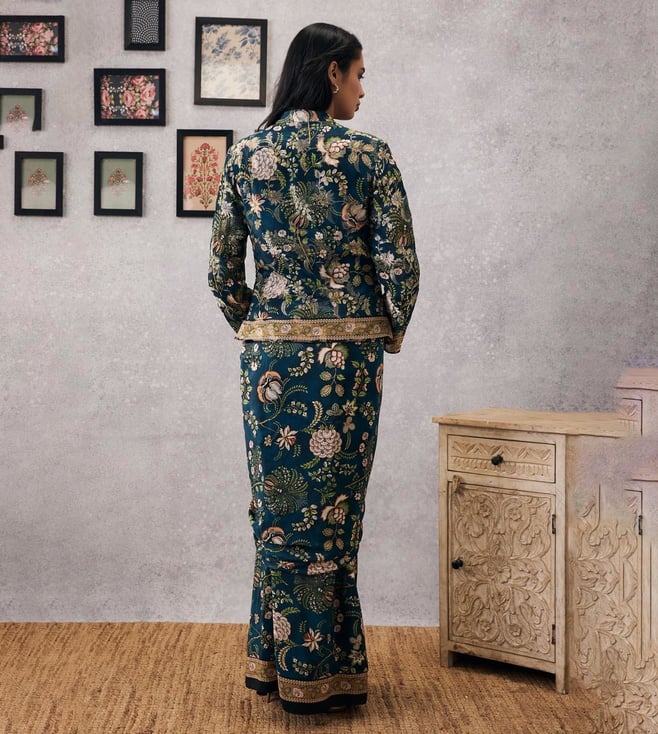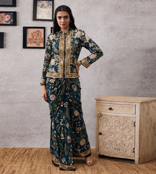 Soup By Sougat Paul Green Mehr Embroidered Jacket With Drape Skirt