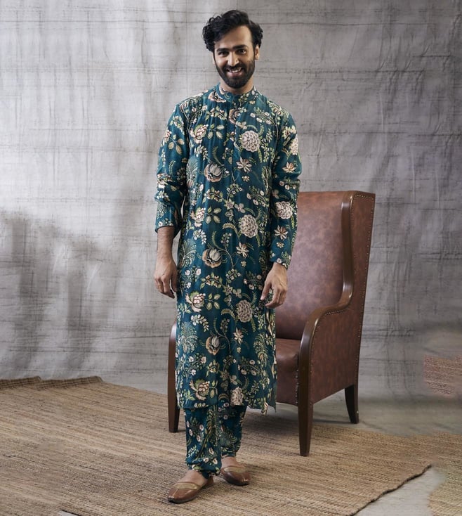 Channel a winning style effortlessly by wearing this printed kurta set. Crafted using premium quality muslin slub, it will be very soft on the skin. Disclaimer: Product colour may slightly vary due to photographic lighting sources. Country of Origin - India.