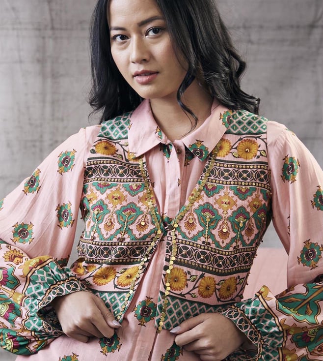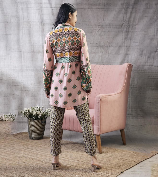Soup By Sougat Paul Multi Color Taahira Printed Top With Jacket and Pant