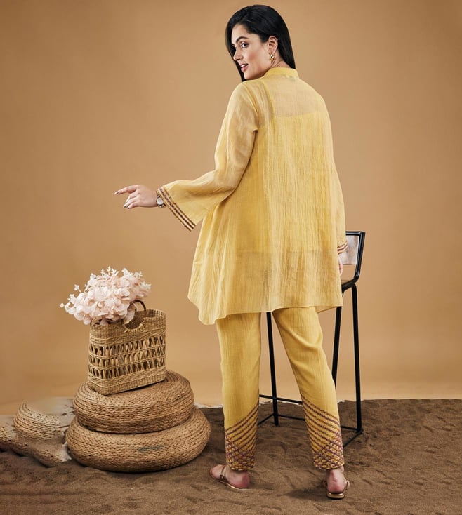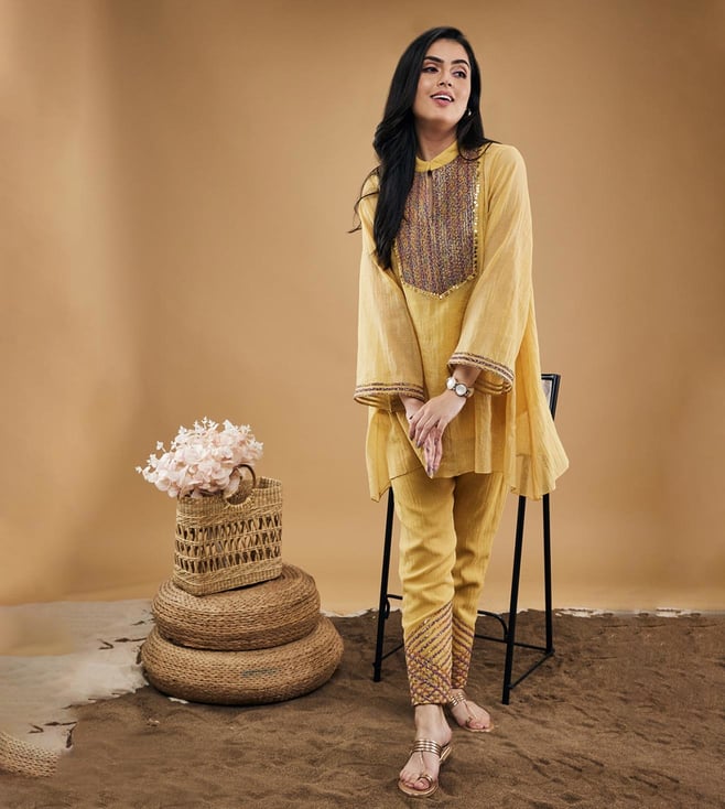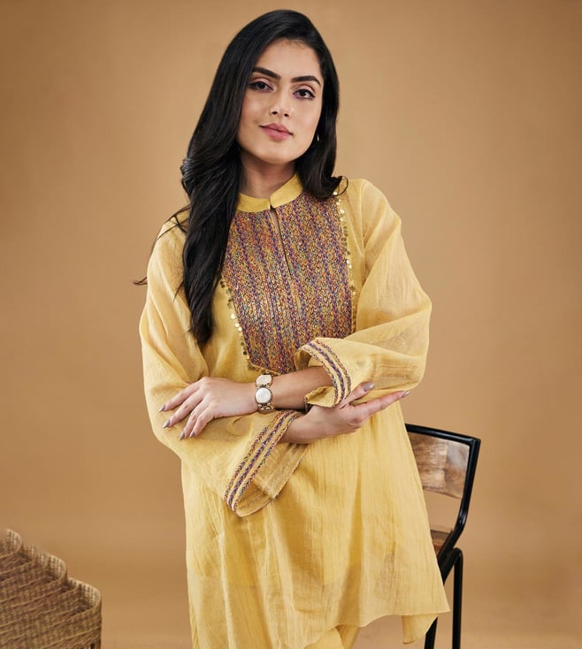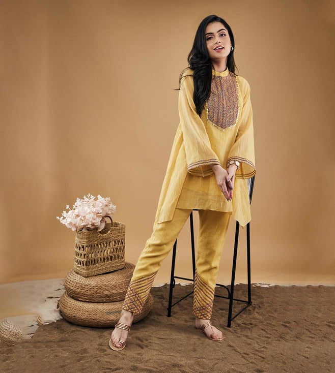 Inject high-street fashion to your wardrobe with this kurta set. Tailored to sartorial perfection from handloom cotton, it assures a soft and soothing touch against the skin. Disclaimer: Product colour may slightly vary due to photographic lighting sources. Country of Origin - India.