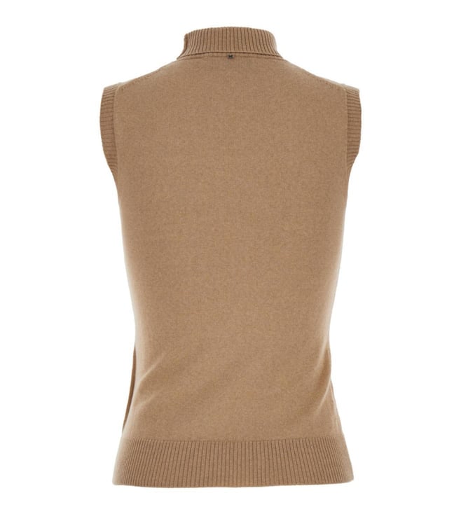 The Sportmax Beige Ardenza Knit Vest is a sophisticated blend of elegance and comfort, crafted from 100% wool for a luxurious feel. Its regular fit ensures a flattering silhouette, while the intricate pattern adds a touch of modern flair. Designed for the discerning woman, this vest features a seamless closure that enhances its sleek appearance. The warm beige hue complements any wardrobe, making it a versatile piece for both casual and formal occasions, embodying timeless style and contemporary charm.