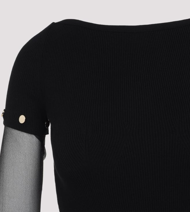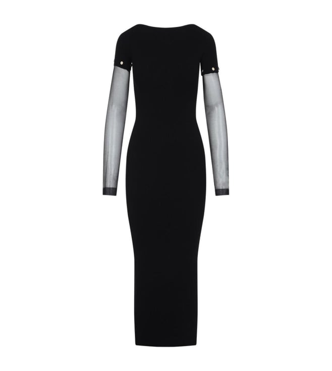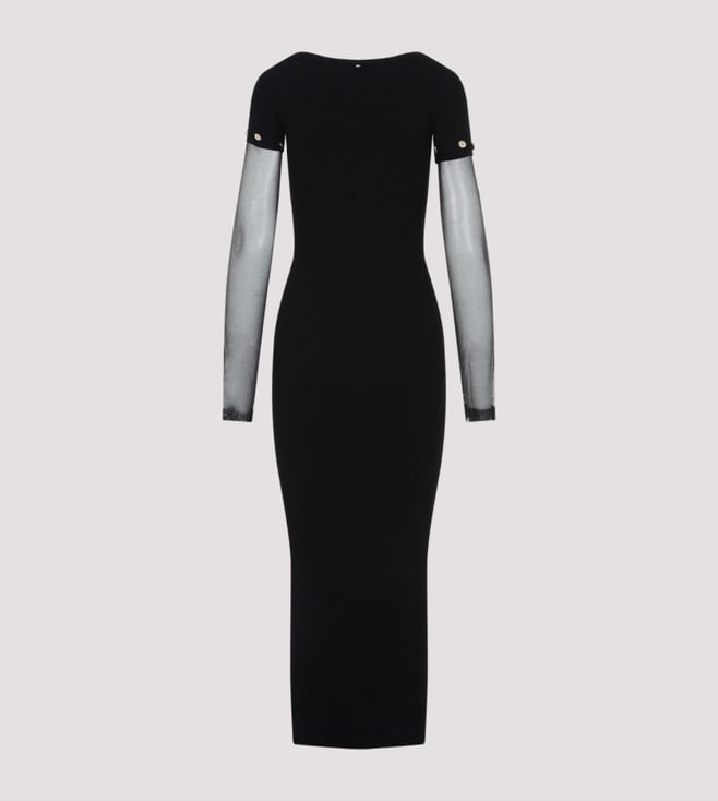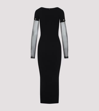 Embrace timeless elegance with this stunning black dress, crafted from a luxurious blend of 72% viscose and 28% polyester. The solid pattern exudes sophistication, while the long sleeves offer a touch of grace. The boat neck design adds a hint of classic allure, perfect for any occasion. Its sleek silhouette flatters the figure, making it a versatile addition to any wardrobe. Whether for a formal event or a chic evening out, this dress promises to be a captivating choice for the modern woman.