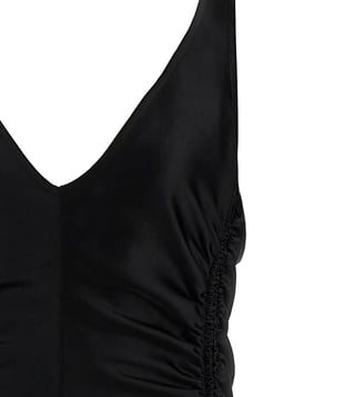Unveil your inner elegance with this stunning black dress, a masterpiece of simplicity and sophistication. Crafted from 100% polyester, it drapes effortlessly, offering a sleek silhouette. The solid black hue exudes timeless allure, while the sleeveless design and V-neckline add a touch of modernity. Perfect for any occasion, its discreet closure ensures a seamless fit. This dress is a versatile staple, embodying both grace and confidence, making it an essential addition to any wardrobe.