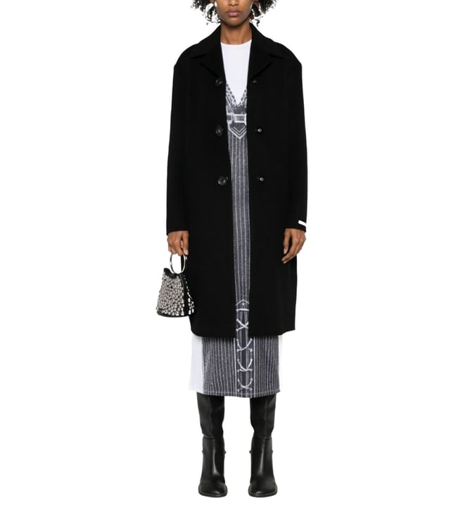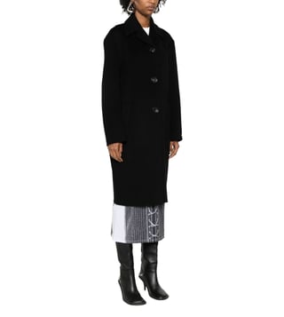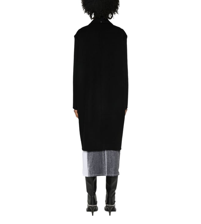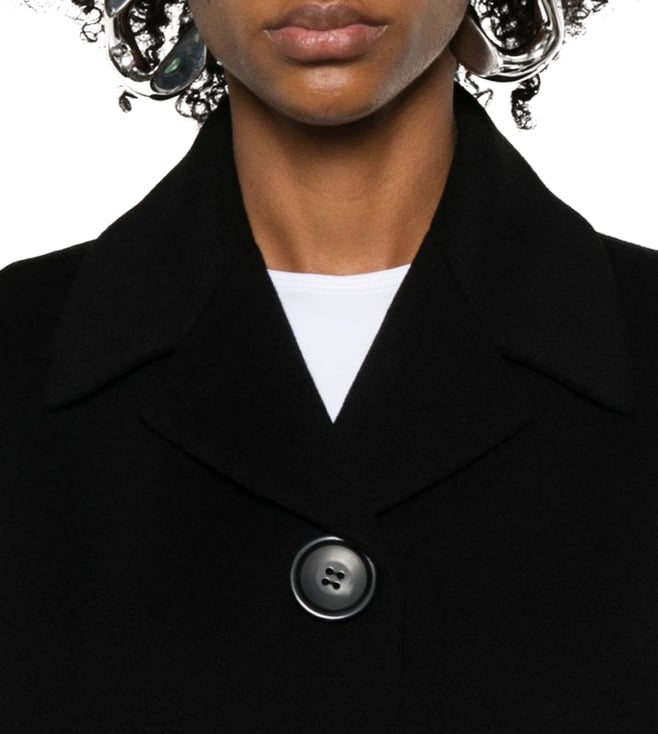Elevate your daily style with the Sportmax Black Regular Fit Midi Coat. Crafted with luxurious wool, this coat is perfect for everyday wear with its comfortable regular fit and versatile black color. The long sleeves and notched lapel add a classic touch to the design, making it a timeless wardrobe staple. Stay chic and cozy in this midi coat that effortlessly combines fashion and function. Upgrade your outerwear collection with this must-have piece that will keep you looking stylish all season long.