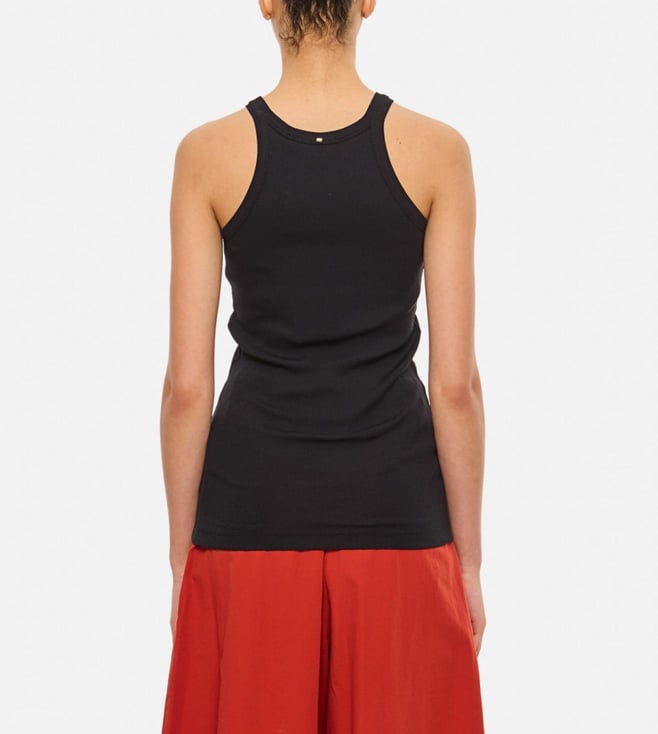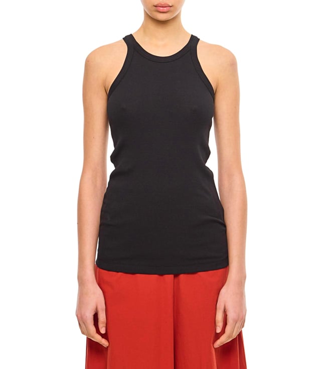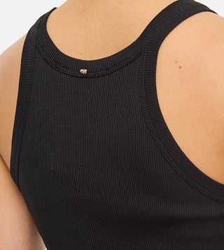 The Sportmax Black Ribbed Top is a sophisticated blend of elegance and comfort, crafted for the modern woman. Its regular fit gracefully contours the body, showcasing a timeless ribbed pattern that exudes understated chic. The luxurious fabric, composed of 69% cotton, 27% silk, and 4% elastane, offers a soft, breathable feel with a hint of stretch for ease of movement. Designed with a sleek closure, this top is a versatile staple, perfect for elevating any ensemble with its refined allure.