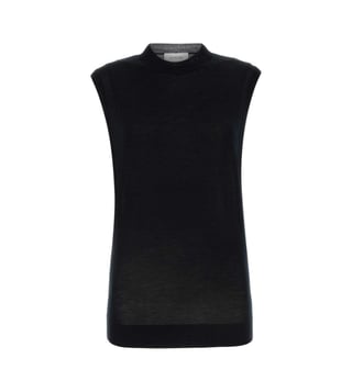 The Sportmax Black Wool Blend Odissea Top is a sophisticated fusion of elegance and comfort, tailored for the modern woman. Crafted from a luxurious blend of 70% wool and 30% silk, this top offers a sumptuous feel against the skin. Its regular fit ensures a flattering silhouette, while the sleek black hue exudes timeless style. Designed with a minimalist pattern, it features a discreet closure that enhances its seamless look. Perfect for any occasion, this top is a versatile addition to any wardrobe.