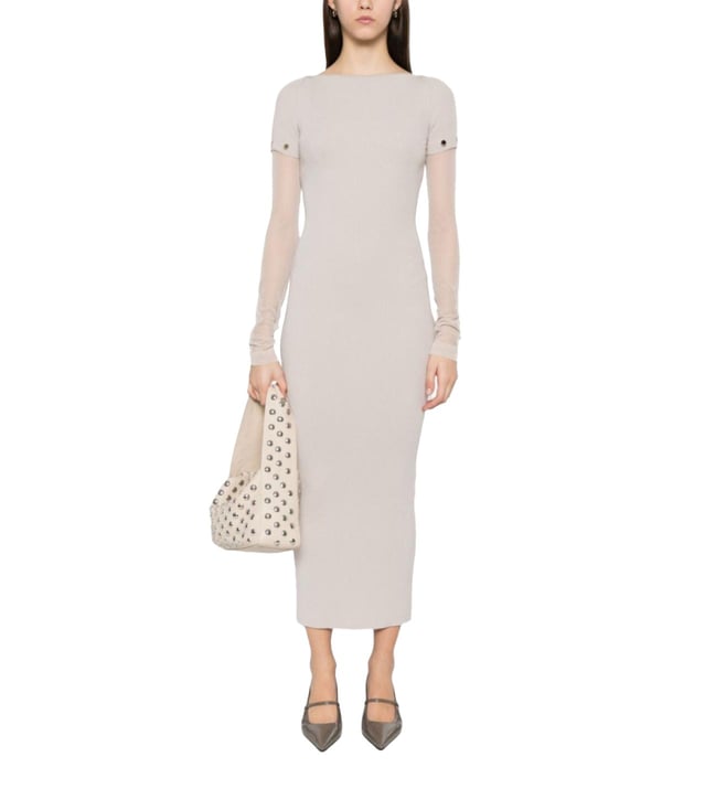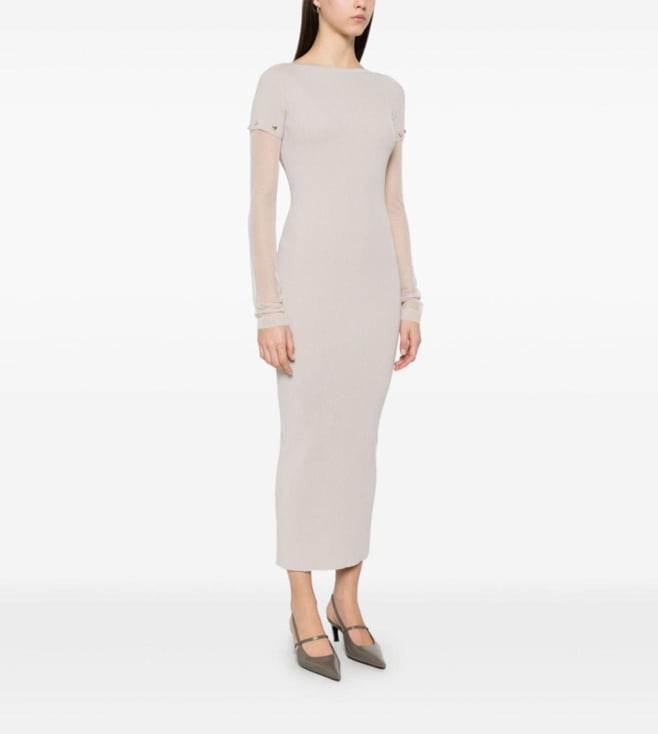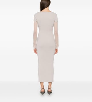Embrace timeless elegance with this sophisticated grey dress, crafted from 100% viscose for a luxurious feel. The solid pattern exudes understated charm, while the short sleeves offer a touch of casual grace. Its boat neck design adds a hint of classic allure, perfect for any occasion. The dress features a seamless closure, ensuring a sleek silhouette that flatters every figure. Ideal for the modern woman, this piece effortlessly combines comfort and style, making it a versatile wardrobe staple.