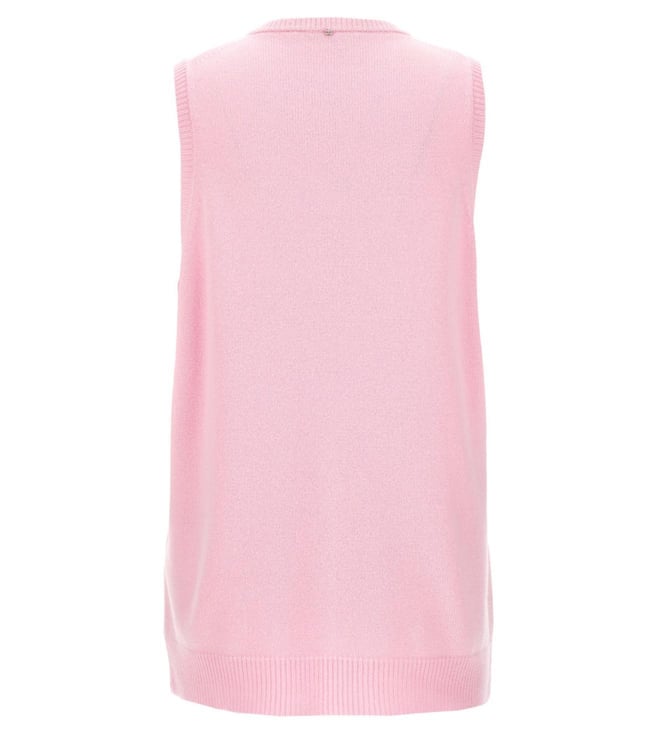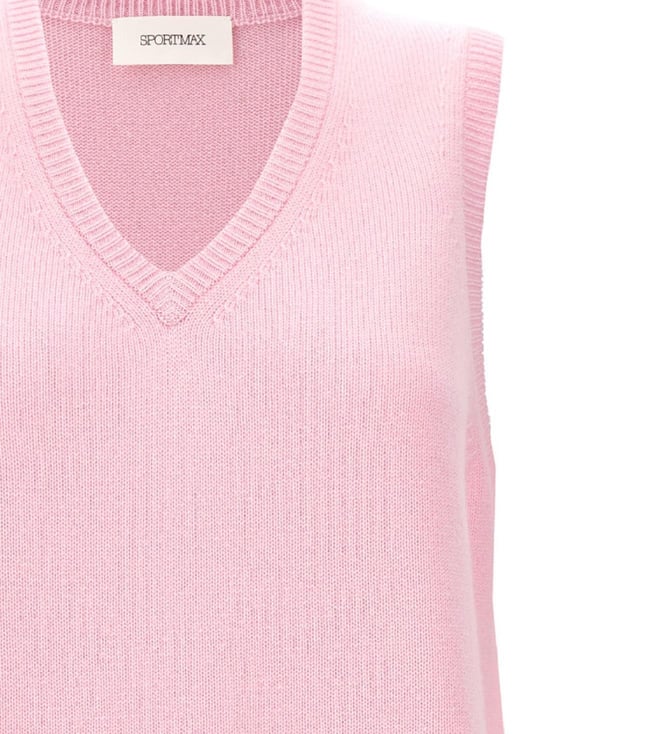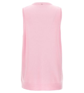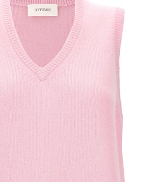 The Sportmax Pink Gimmy Vest Top is a luxurious blend of 80% wool and 20% cashmere, offering a sumptuous feel against the skin. Its regular fit ensures comfort and style, while the vibrant pink hue adds a pop of color to any ensemble. Designed for women who appreciate elegance and warmth, this vest top features a sleek closure that enhances its modern silhouette. Perfect for layering or as a standalone piece, it effortlessly combines sophistication with a touch of playful charm.