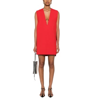 Unleash your inner diva with this stunning red dress, a masterpiece of elegance and allure. Crafted from a luxurious blend of 97% viscose and 3% elastane, it drapes your silhouette with a perfect fit, offering both comfort and style. The solid red hue exudes confidence, while the sleeveless design and V-neckline add a touch of sophistication. Ideal for any occasion, this dress is your go-to choice for making a bold statement, ensuring all eyes are on you as you glide through the room.