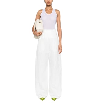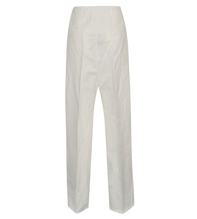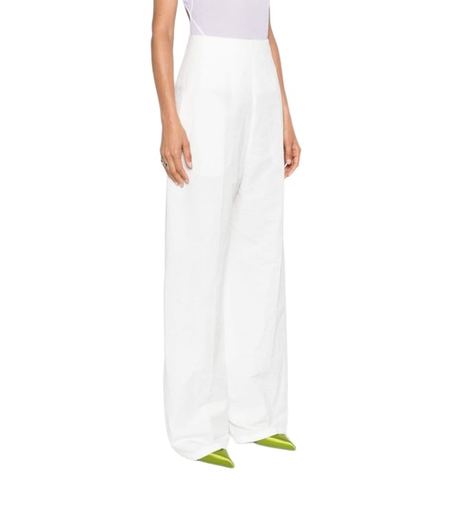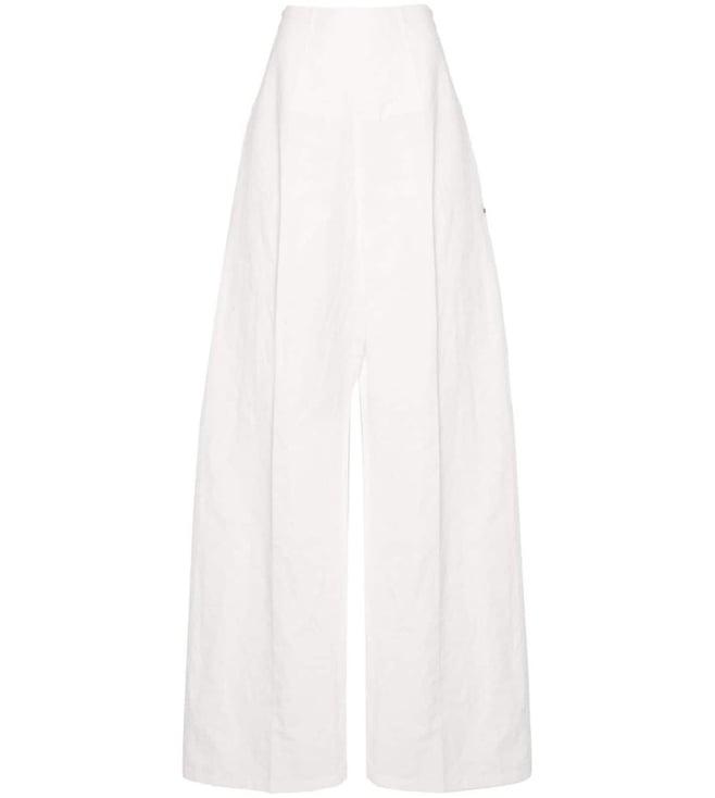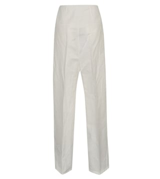 Elevate your wardrobe with the Sportmax White Loose Fit Trousers. Designed with sportmax white cotton leone trousers with belt loops, concealed side pockets, a wide leg silhouette, a pleated front design and an eyelet and zip fastening. these trousers combine comfort and sophistication for everyday wear. Products purchased from Darveys are supported exclusively by the warranty/exchange policies of Darveys and its partner boutiques. Brand owners and their channel partners are not responsible for exchange/warranty services for items purchased through Darveys.
