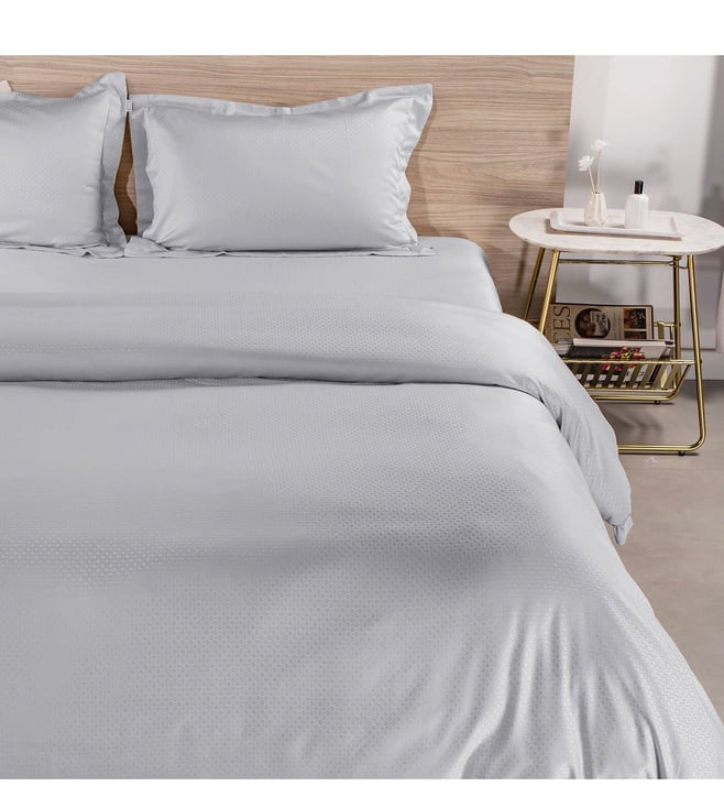 Experience the ultimate comfort of the Green bamboo bedding set from Spread Spain, featuring a luxurious 500-thread count for an exquisitely gentle feel. Crafted with a special quality bamboo yarn, this bedding set offers a beautiful drape and an extra layer of quality comfort, making them perfect for a peaceful night's sleep. This 4-piece set contains a bedsheet, two pillow covers and a duvet cover.