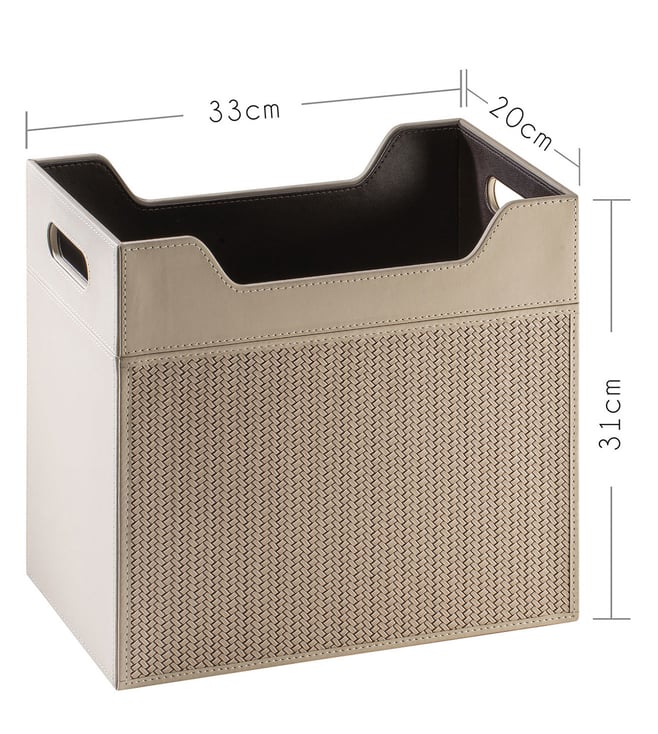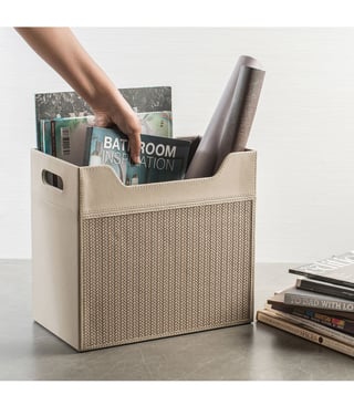 This magazine holder organizes all your books, magazines and newspapers in one place. This holder is finely hand-crafted with eco-friendly leather in a woven finish blend with fine wood embellished with the strongest stitching around it.