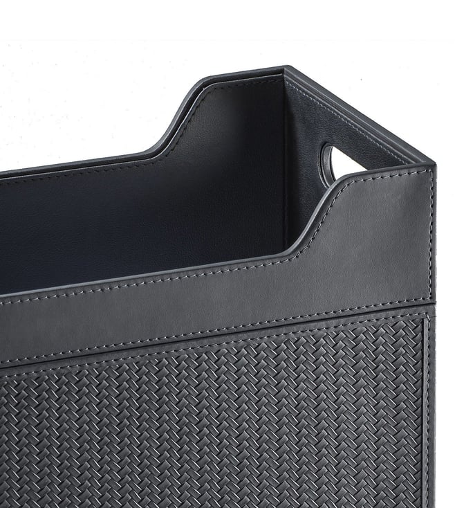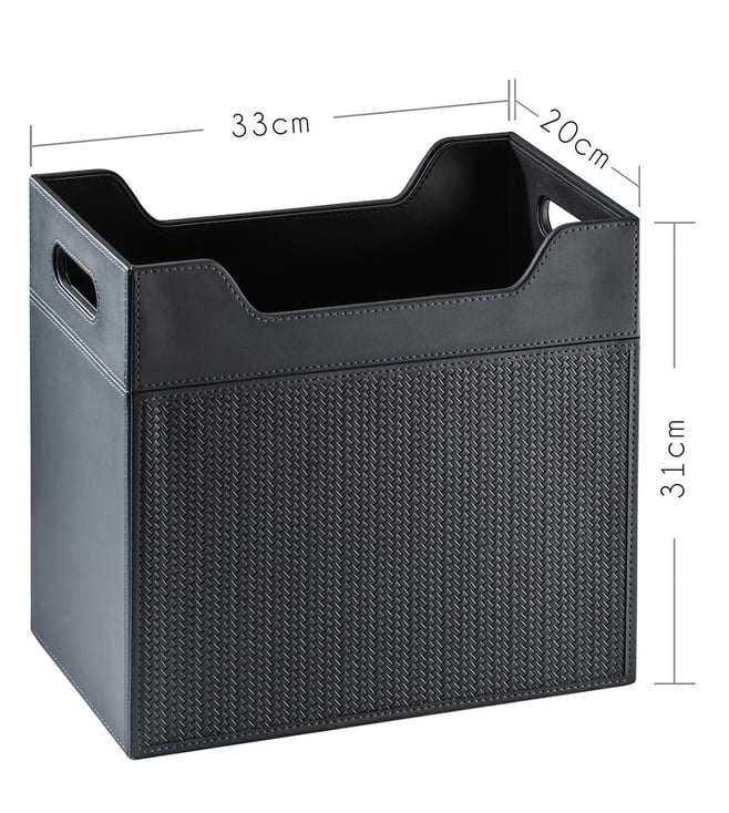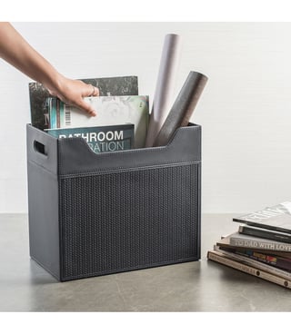 This magazine holder is finely hand-crafted with eco-friendly leather in a woven finish blend with fine wood embellished with the strongest stitching around it. This holder organizes all your books, magazines and newspapers in one place.