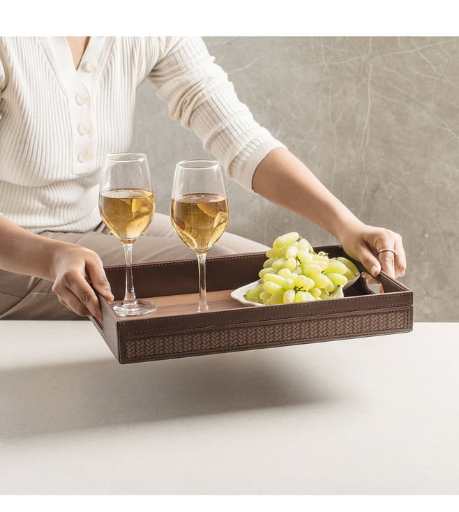 This tray is a functional item with a modern design. It can be used for serving food or as a decorative item and keeping utility items. It makes your space look beautiful and sleek. It is made of superior-quality of Italian vegan leather.