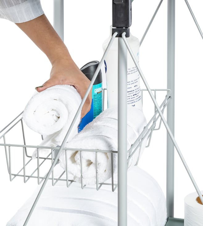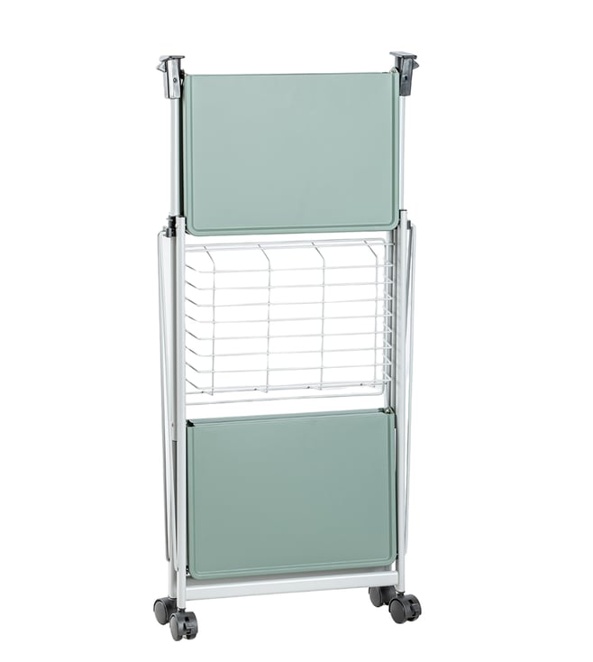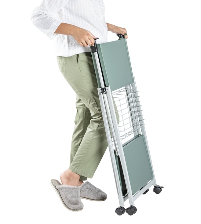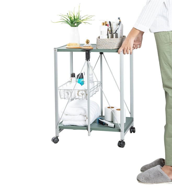 When you require immaculate style and taste for your home, this personal trolley is up to the task. The 3-tier rolling storage utility cart can be used in tight spaces in your home for storage. The open-shelf-designed utility cart adds open air to your space. The 4 easy-glide, durable wheels make the storage cart smooth and convenient to pull in and¿out. It is waterproof and ultra-light yet very durable and lasts for years. It folds on the fingertip.