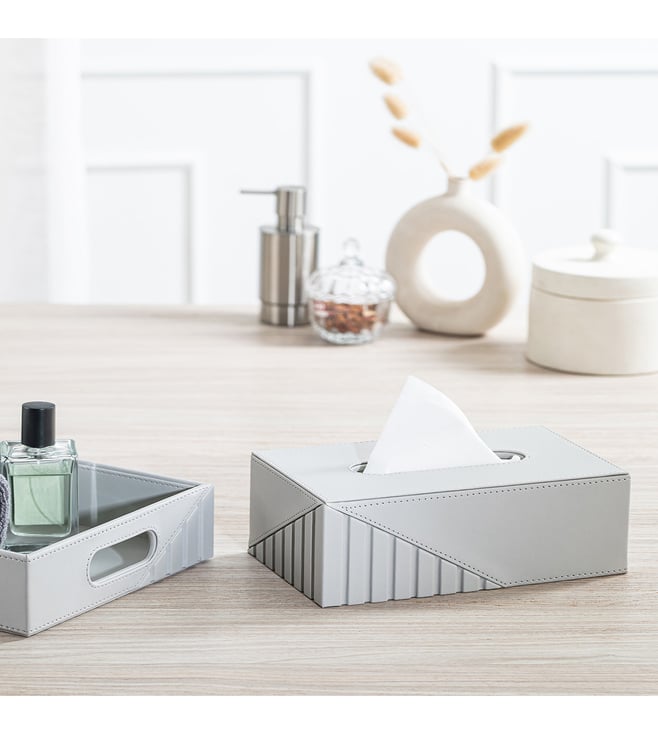 Spread Spain Elegant Fluted Tissue Box Rectangle Silver Grey