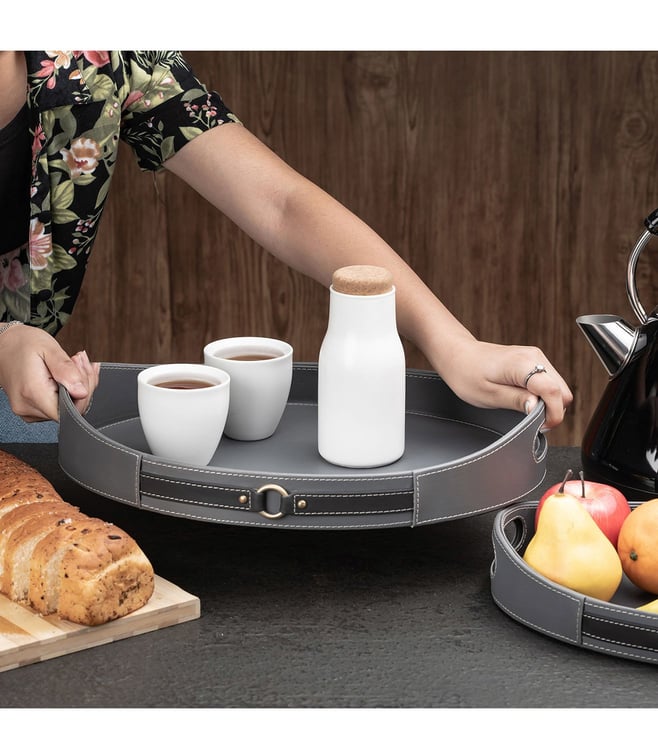 Designed in a contemporary look, this multi-purpose tray comes in two sizes with a smart belt pattern look which makes it the ideal decorative item for your stylish space. This tray fulfills the purpose of acting as the perfect surface to keep utility items.
