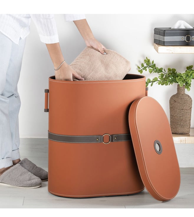 This modern and convenient laundry box is the perfect organizer for your space by fulfilling its basic purpose as well as making your area as eye-pleasing as ever. Made with high-quality leatherette and belt pattern, this is the ideal laundry box for your home or bathroom.
