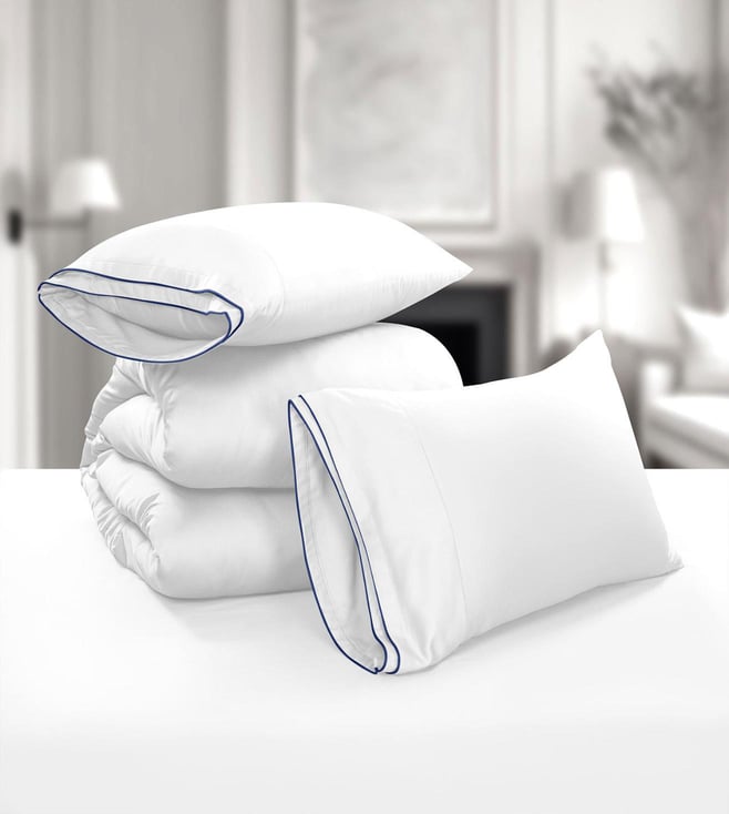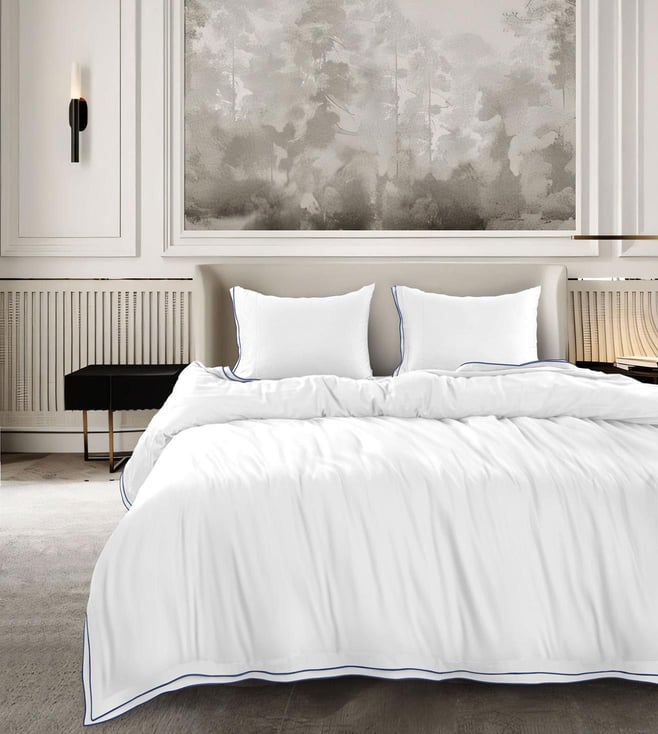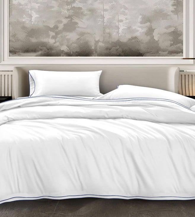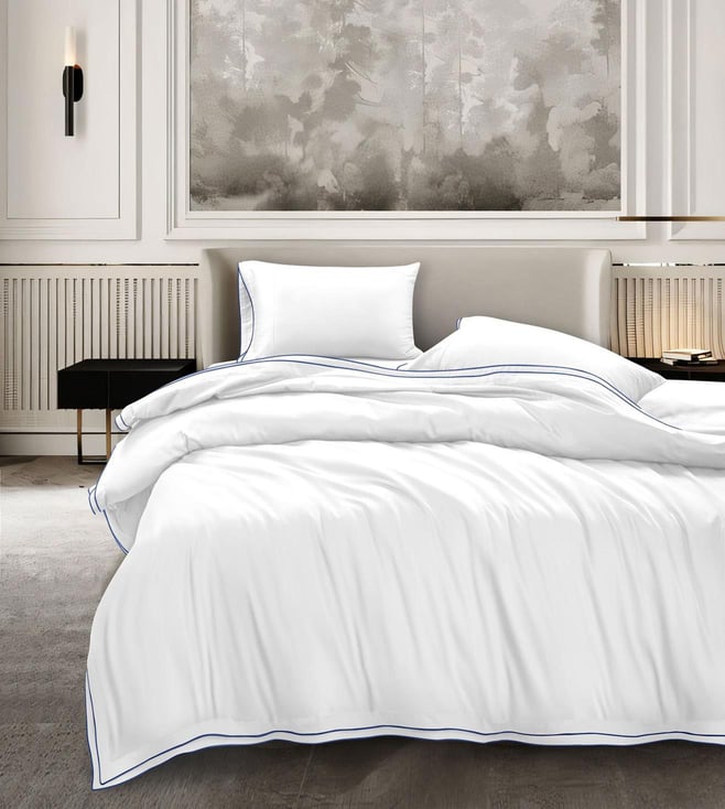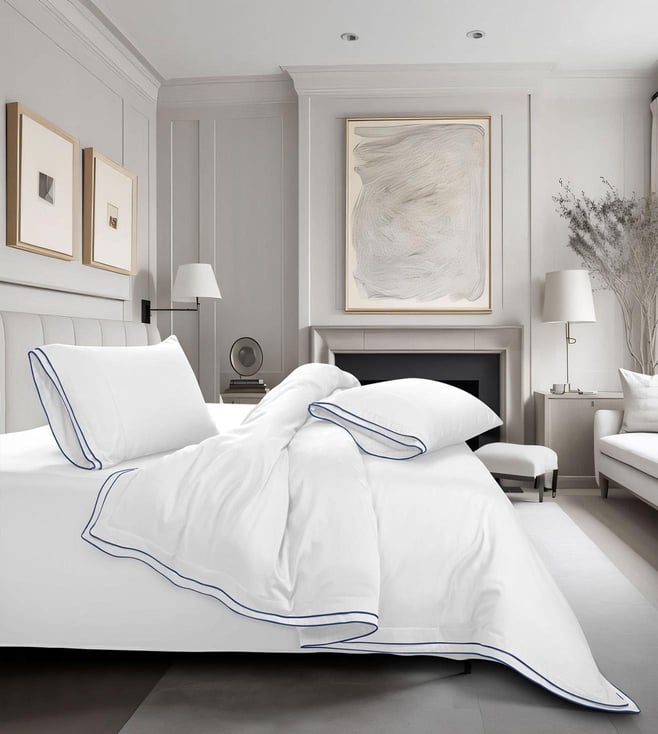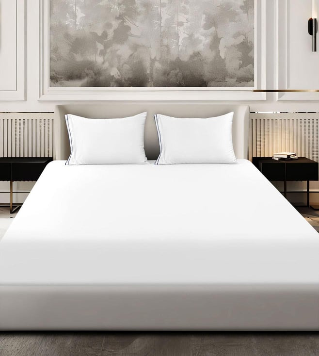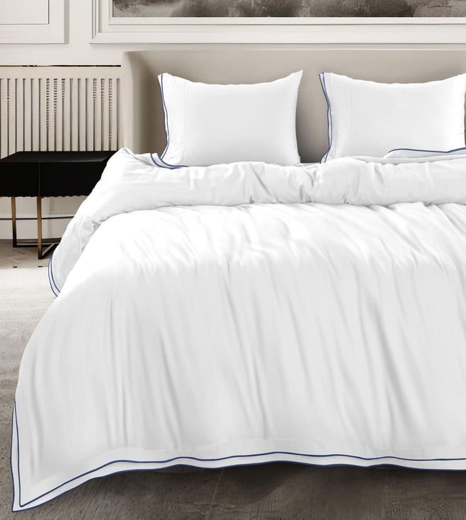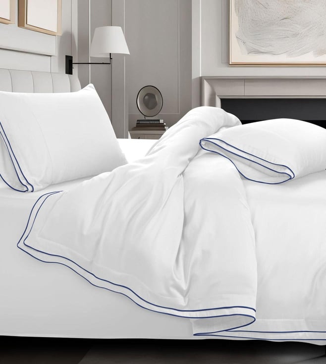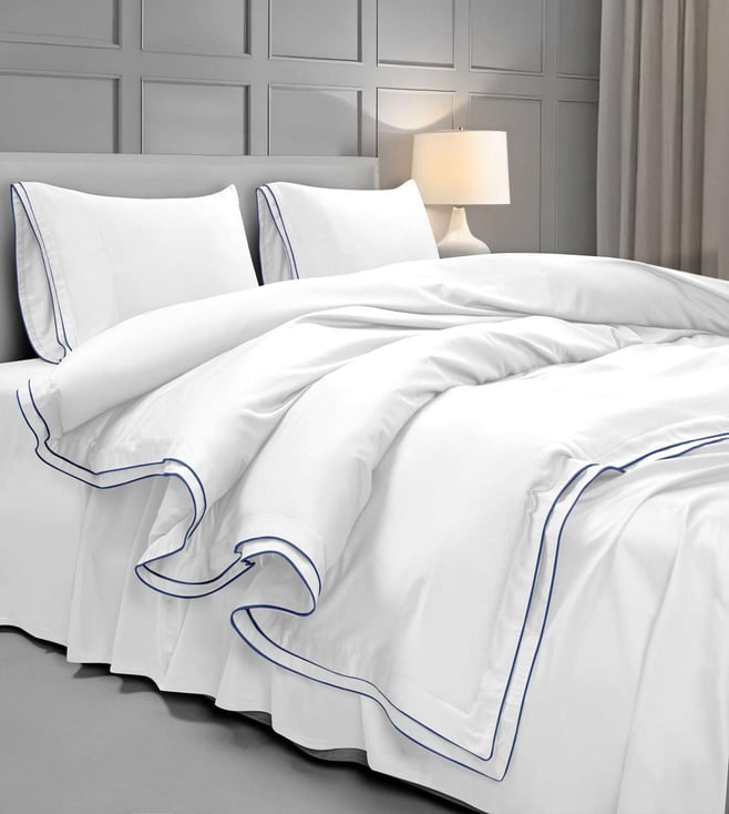 Spread Spain White Cotton 500 TC Bedsheet & Duvet Cover with 2 Pillow Covers