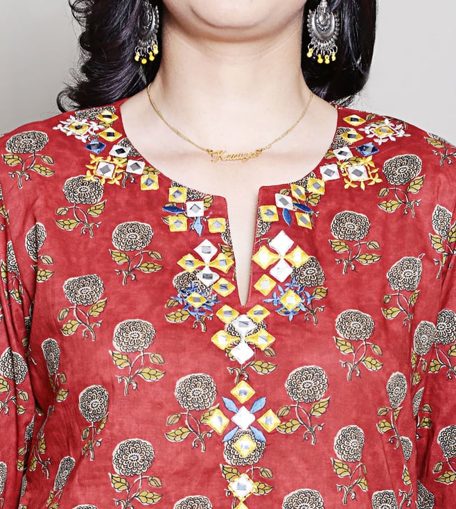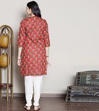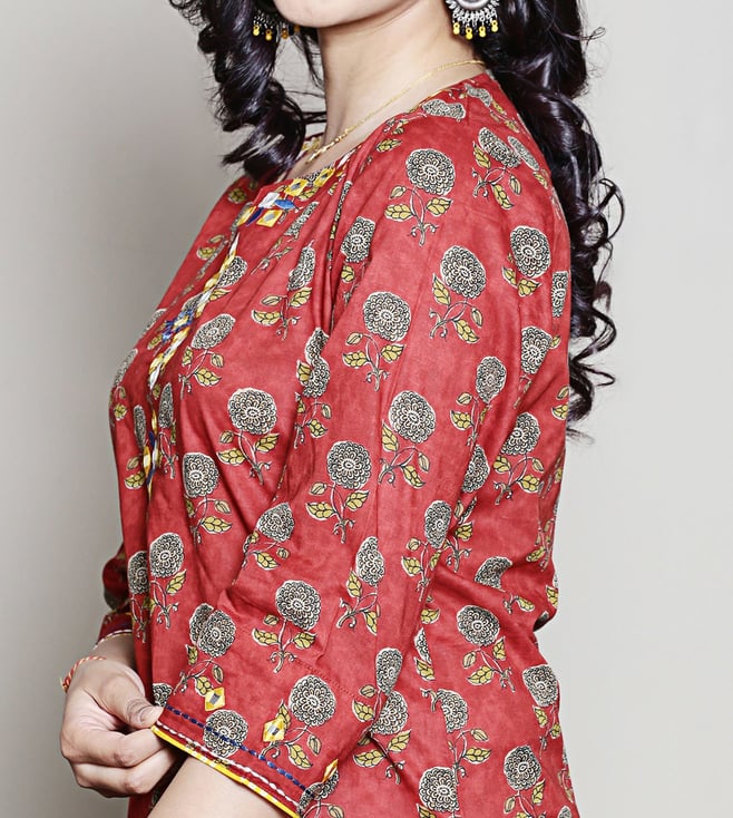 Spring Soul Red Cotton Straight Fit Printed Kurta Set