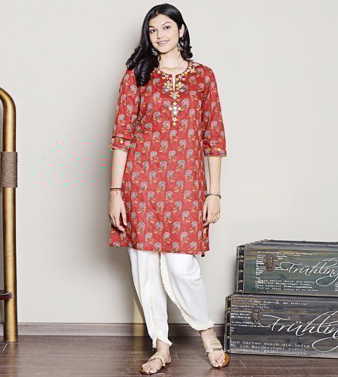 Elevate your wardrobe with the Spring Soul Red Cotton Suit Sets for women. Crafted from comfortable cotton, this vibrant ensemble is perfect for various occasions. Disclaimer: All other items in the image are only for display purposes and will not be a part of the delivery content. Product colour may slightly vary due to photographic lighting sources. Country of Origin - India.