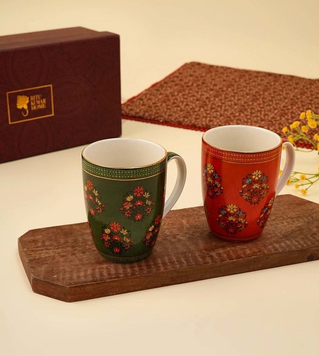 Bloom Green Porcelain Coffee Mugs Set of 2