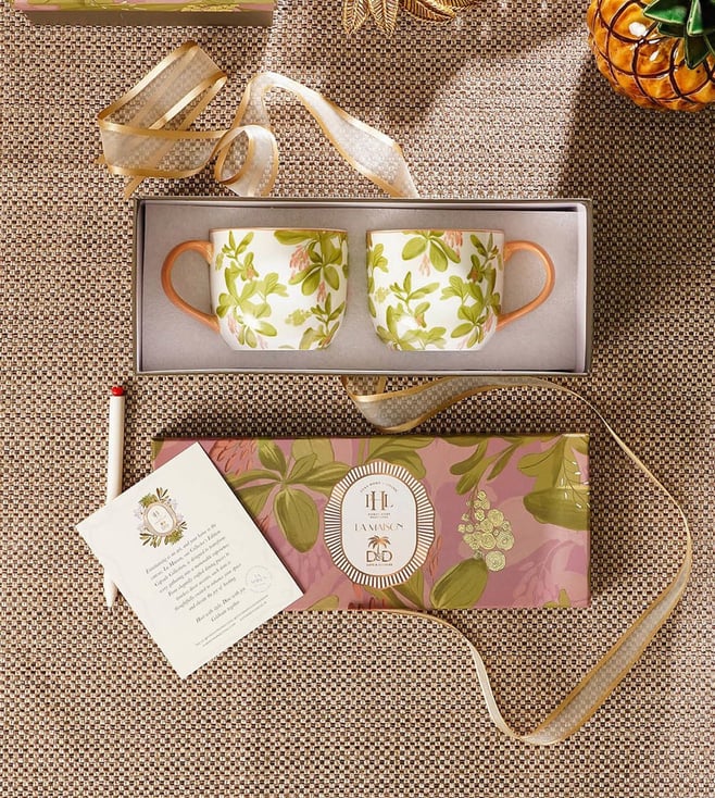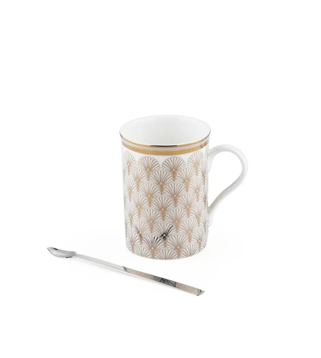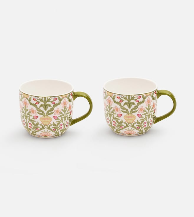 Red & White Porcelain Coffee Mug - Set of 2 (300 ml)